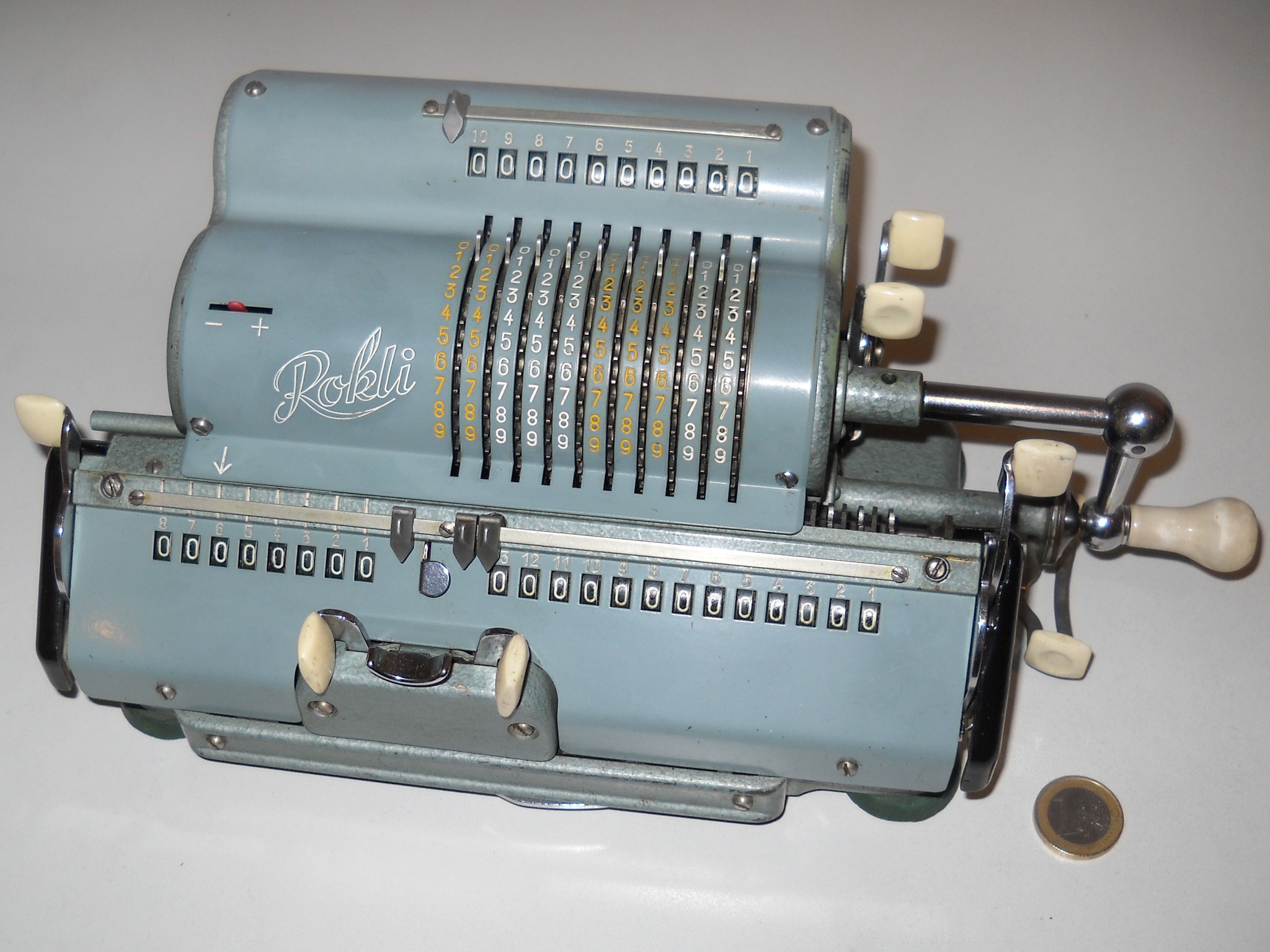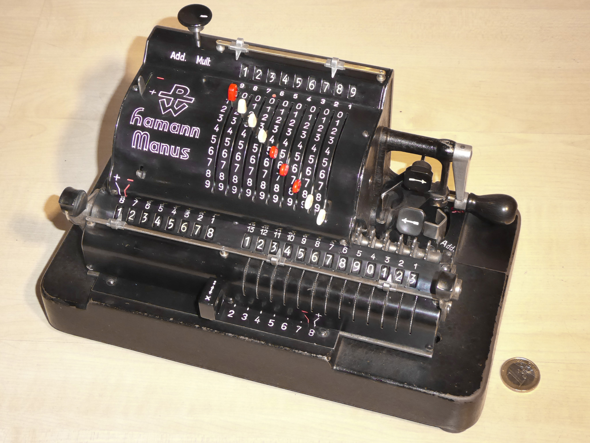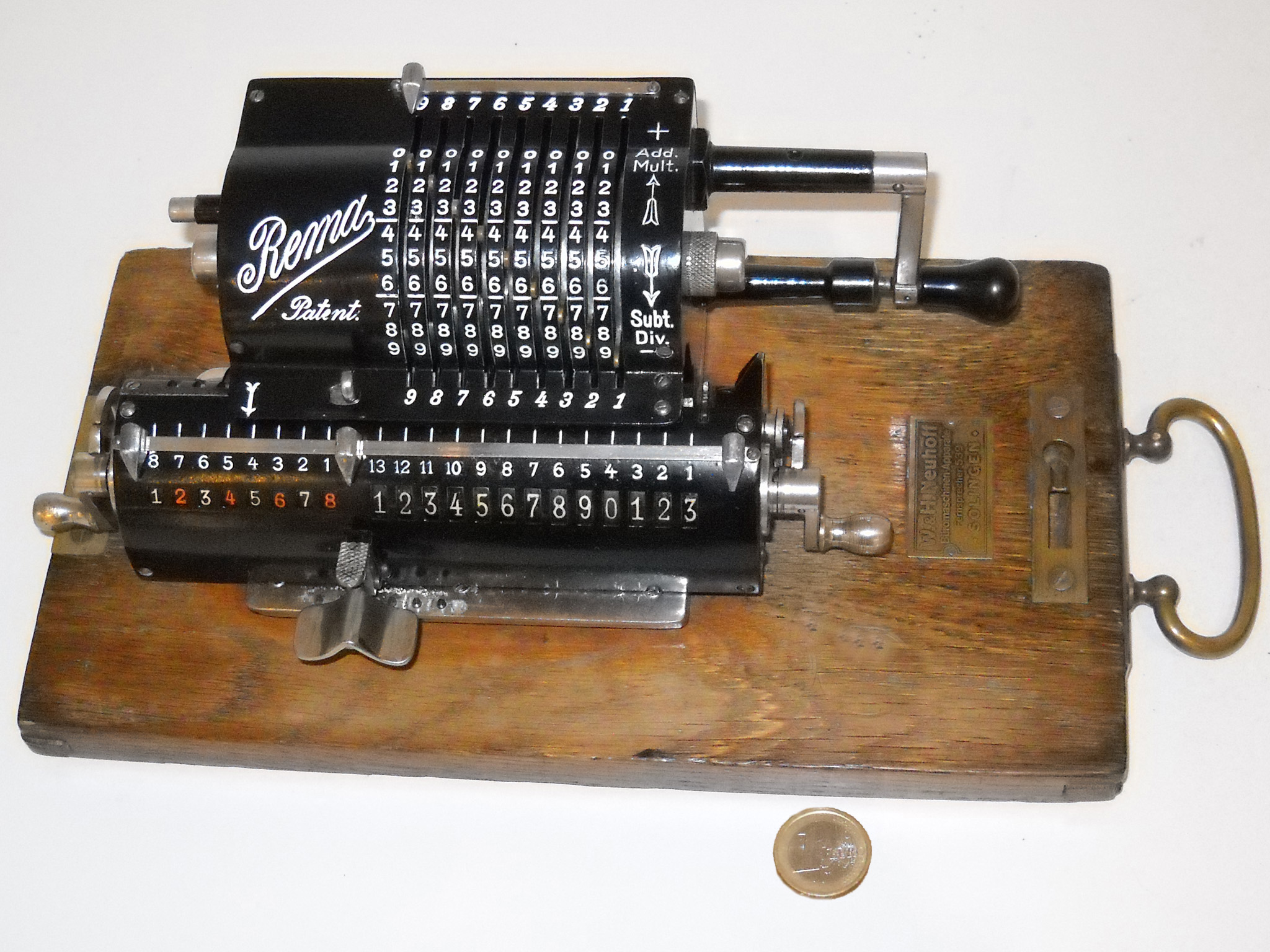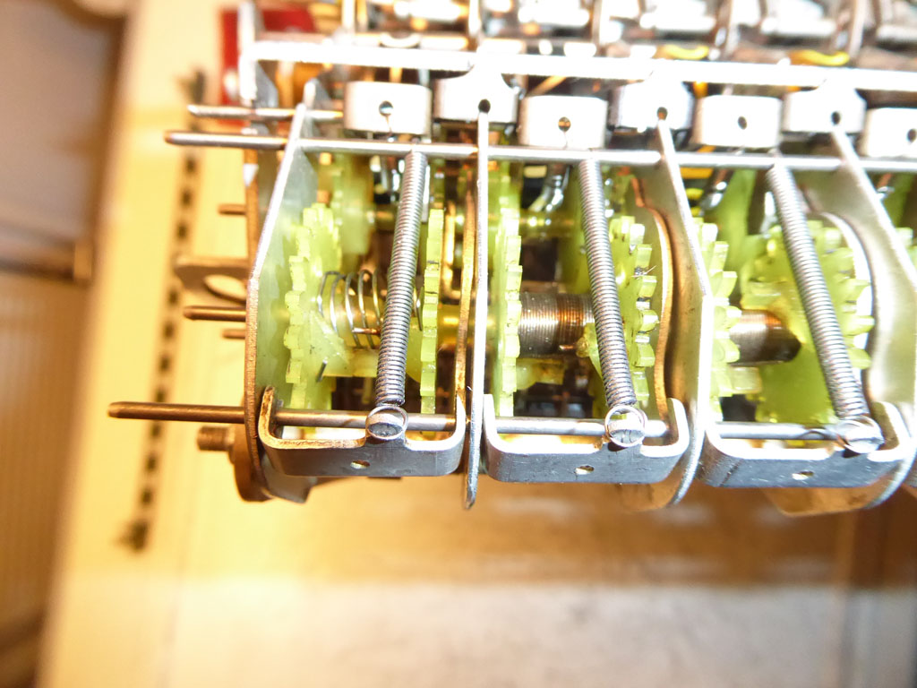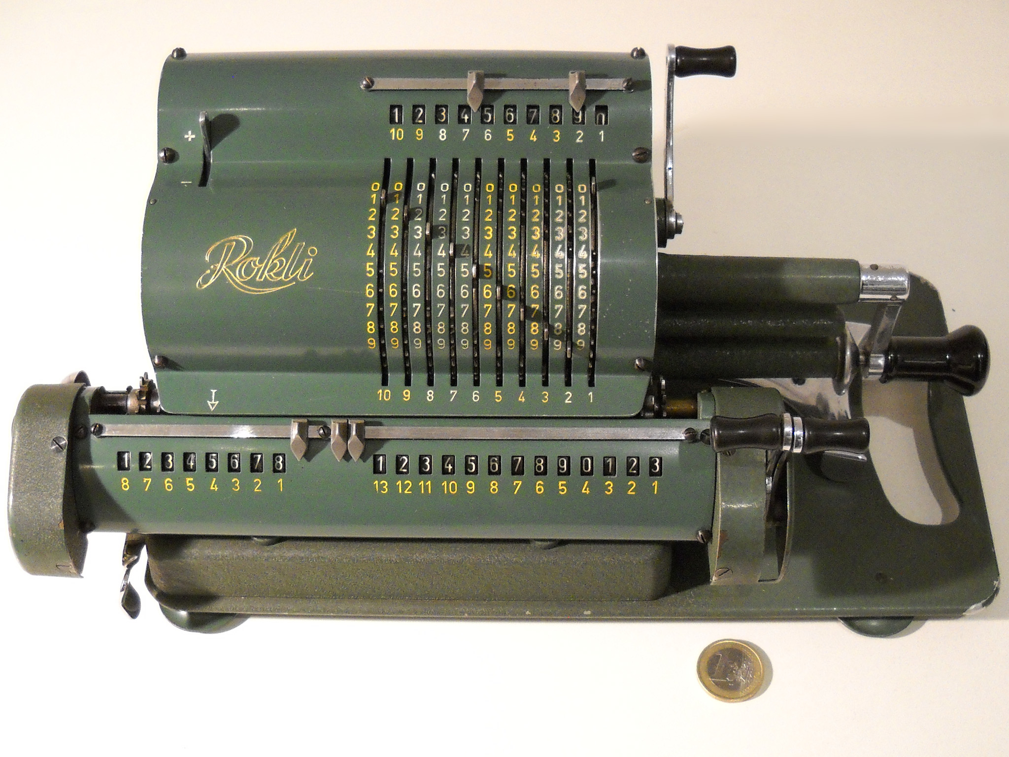 Für alle, die nicht so im Thema sind, hier die Erklärung einiger Fachbegriffe: AdditionsmodusDas Drücken der „Plus“-Taste zählt nicht nur den Wert der Eingabe zum Resultatwerk hinzu, sondern KapazitätIm Zusammenhang mit Rechenmaschinen nur ein anderes Wort für die Stellenzahl der Werke ... klingt aber gelehrter. Schalt(werks)prinzipienJede Zifferneingabe in eine Rechenmaschine muss erst irgendwie erfasst (und meist auch gespeichert) werden. Danach muss der gewünschte Wert natürlich auch seinen Weg zum Ergebnis finden. Zusätzliche Links:Youtube-Video: Staffelwalze (Schema) „Werke“ZehnerübertragWas passiert, wenn in einer Stelle "über die Neun hinaus" addiert werden muss, erklärt die Wikipedia ganz ausführlich. Aber nur die englische Wikipedia erklärt auch, warum die Mechanisierung dieses Vorgangs die größte Herausforderung beim Bau von Rechenmaschinen war. Weitere Erklärungen gewünscht? |