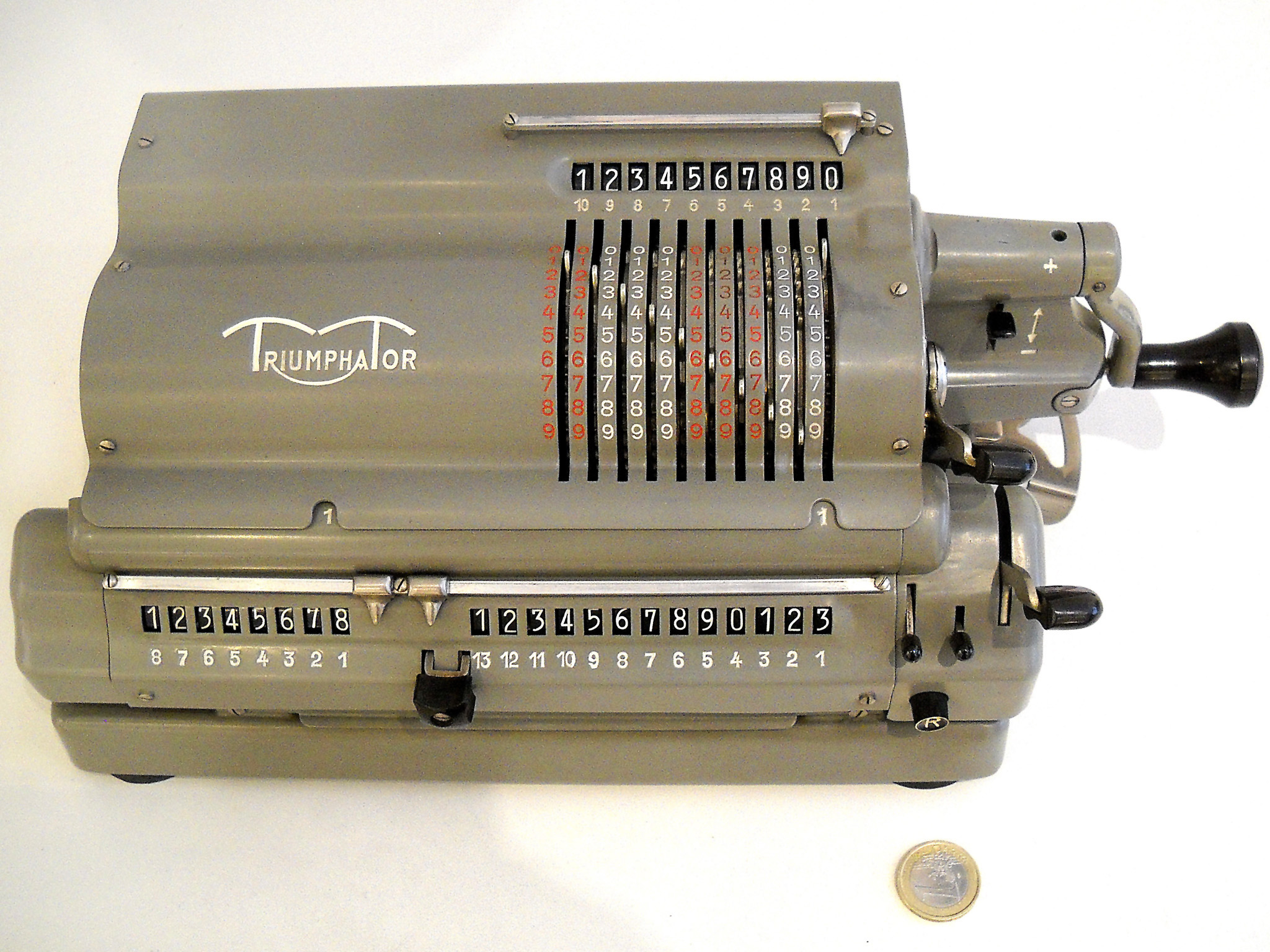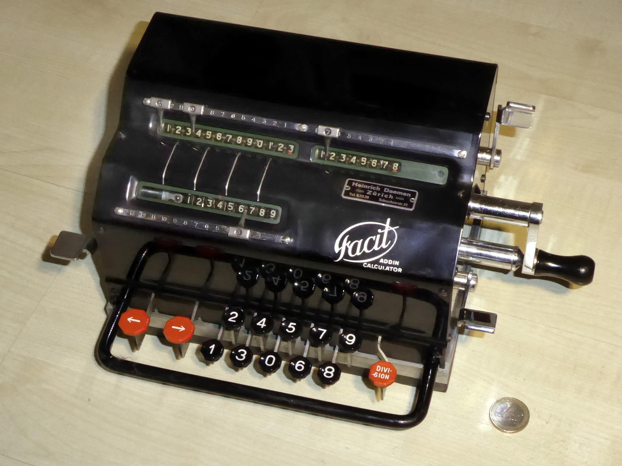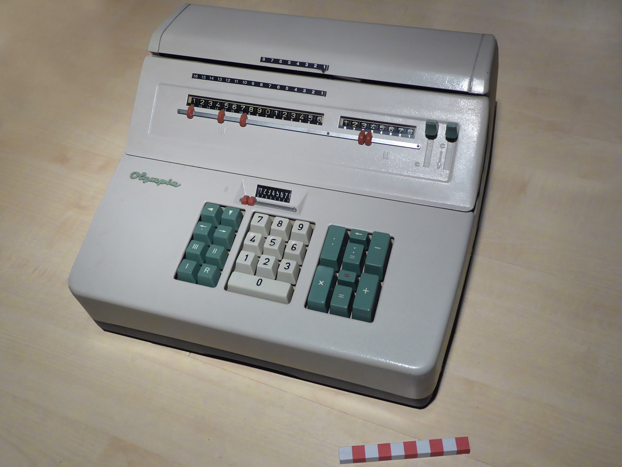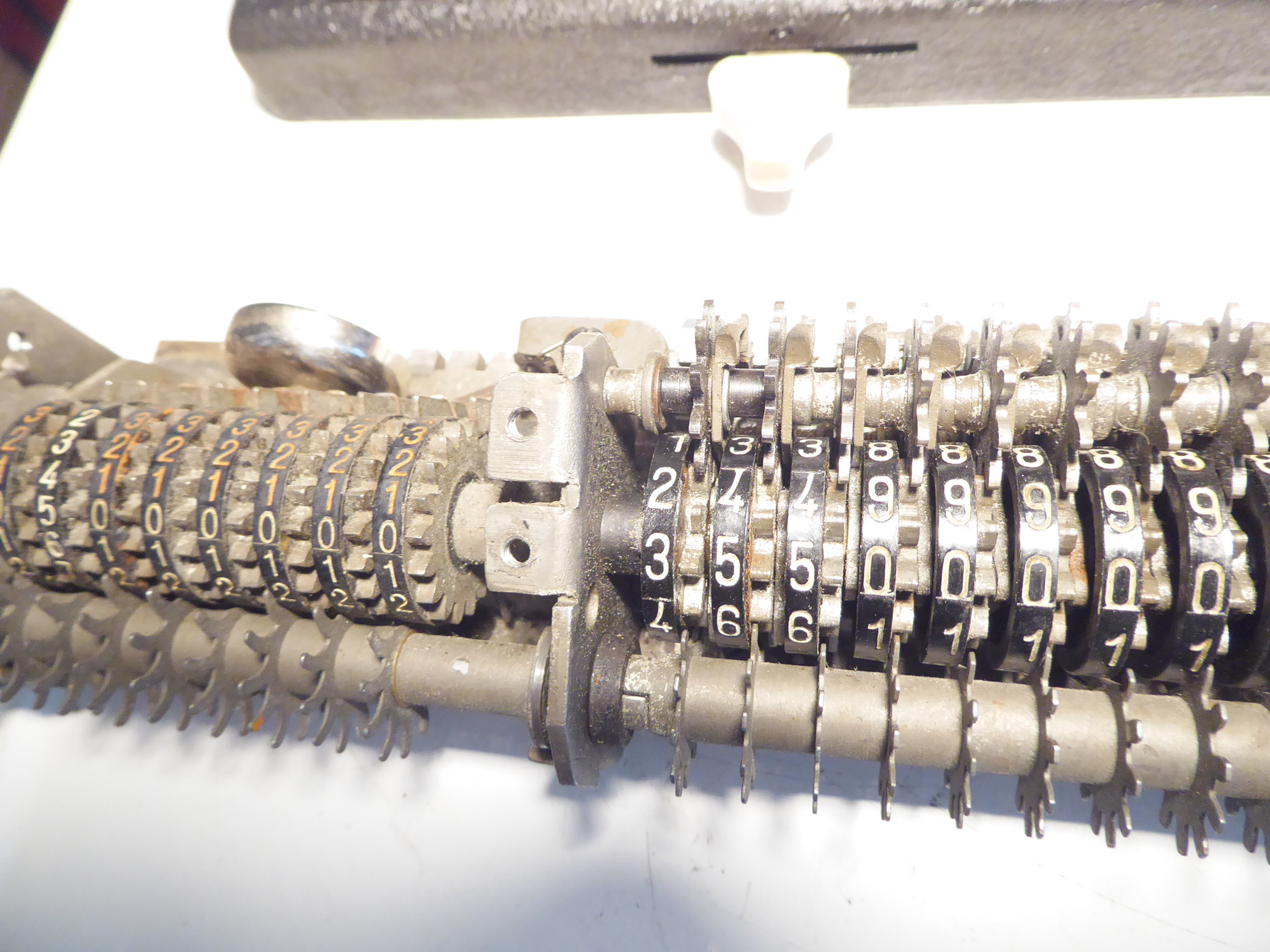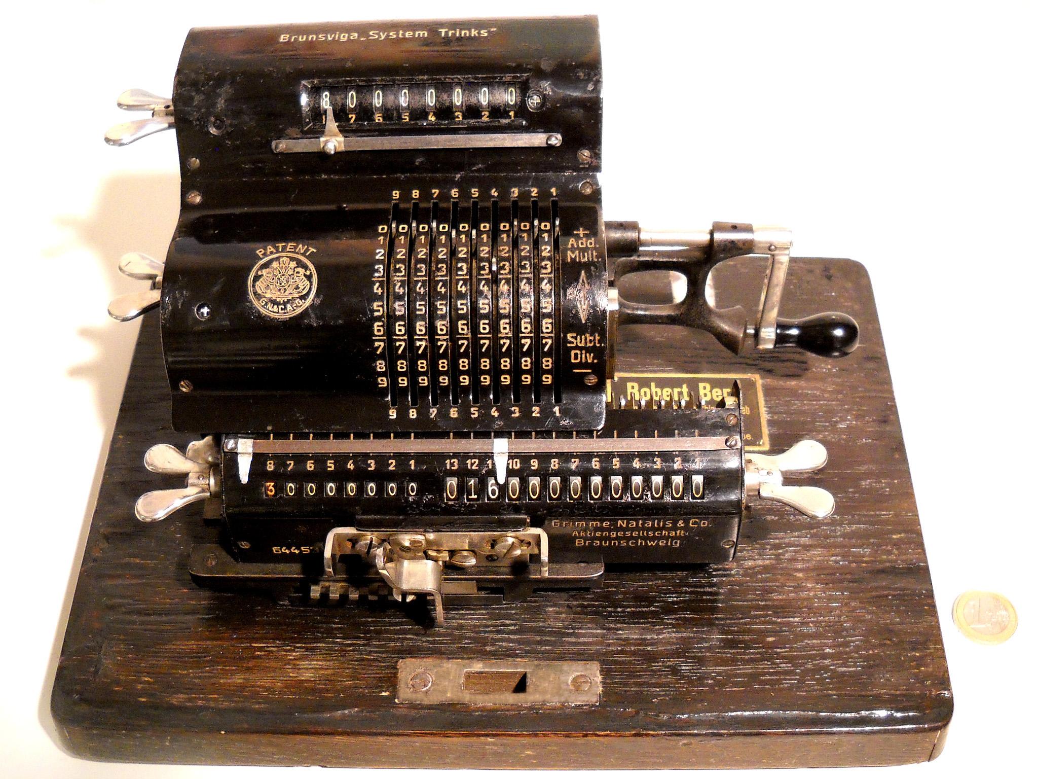 Für alle, die nicht so im Thema sind, hier die Erklärung einiger Fachbegriffe: AdditionsmodusDas Drücken der „Plus“-Taste zählt nicht nur den Wert der Eingabe zum Resultatwerk hinzu, sondern KapazitätIm Zusammenhang mit Rechenmaschinen nur ein anderes Wort für die Stellenzahl der Werke ... klingt aber gelehrter. Schalt(werks)prinzipienJede Zifferneingabe in eine Rechenmaschine muss erst irgendwie erfasst (und meist auch gespeichert) werden. Danach muss der gewünschte Wert natürlich auch seinen Weg zum Ergebnis finden. Zusätzliche Links:Youtube-Video: Staffelwalze (Schema) „Werke“ZehnerübertragWas passiert, wenn in einer Stelle "über die Neun hinaus" addiert werden muss, erklärt die Wikipedia ganz ausführlich. Aber nur die englische Wikipedia erklärt auch, warum die Mechanisierung dieses Vorgangs die größte Herausforderung beim Bau von Rechenmaschinen war. Weitere Erklärungen gewünscht? |