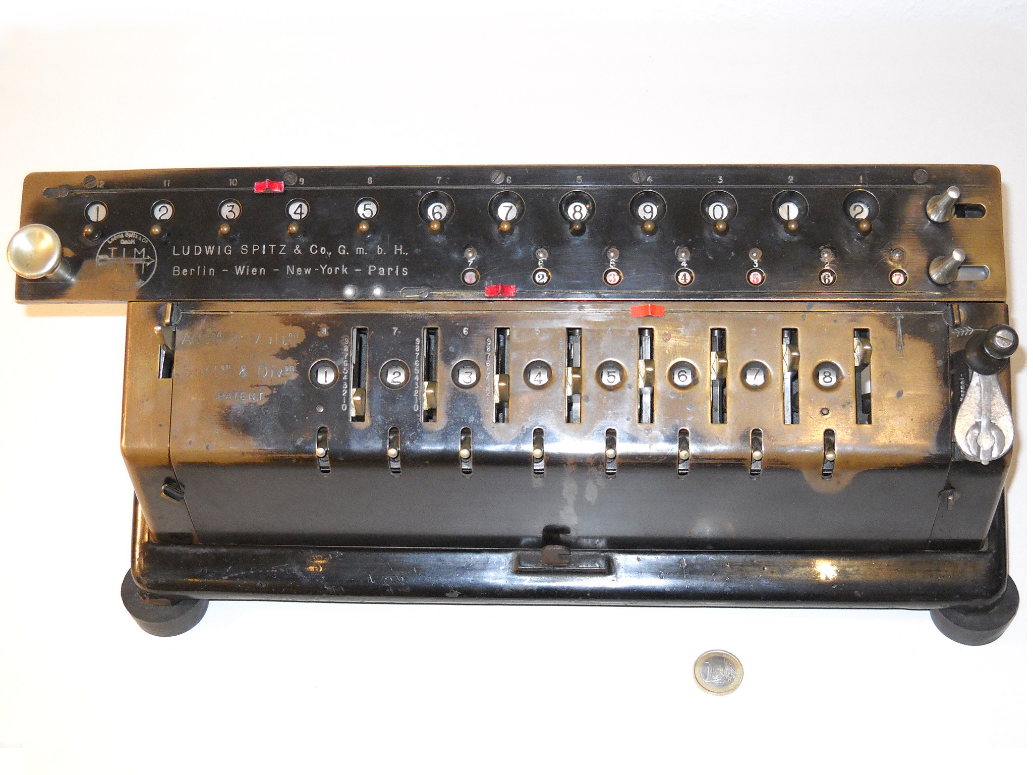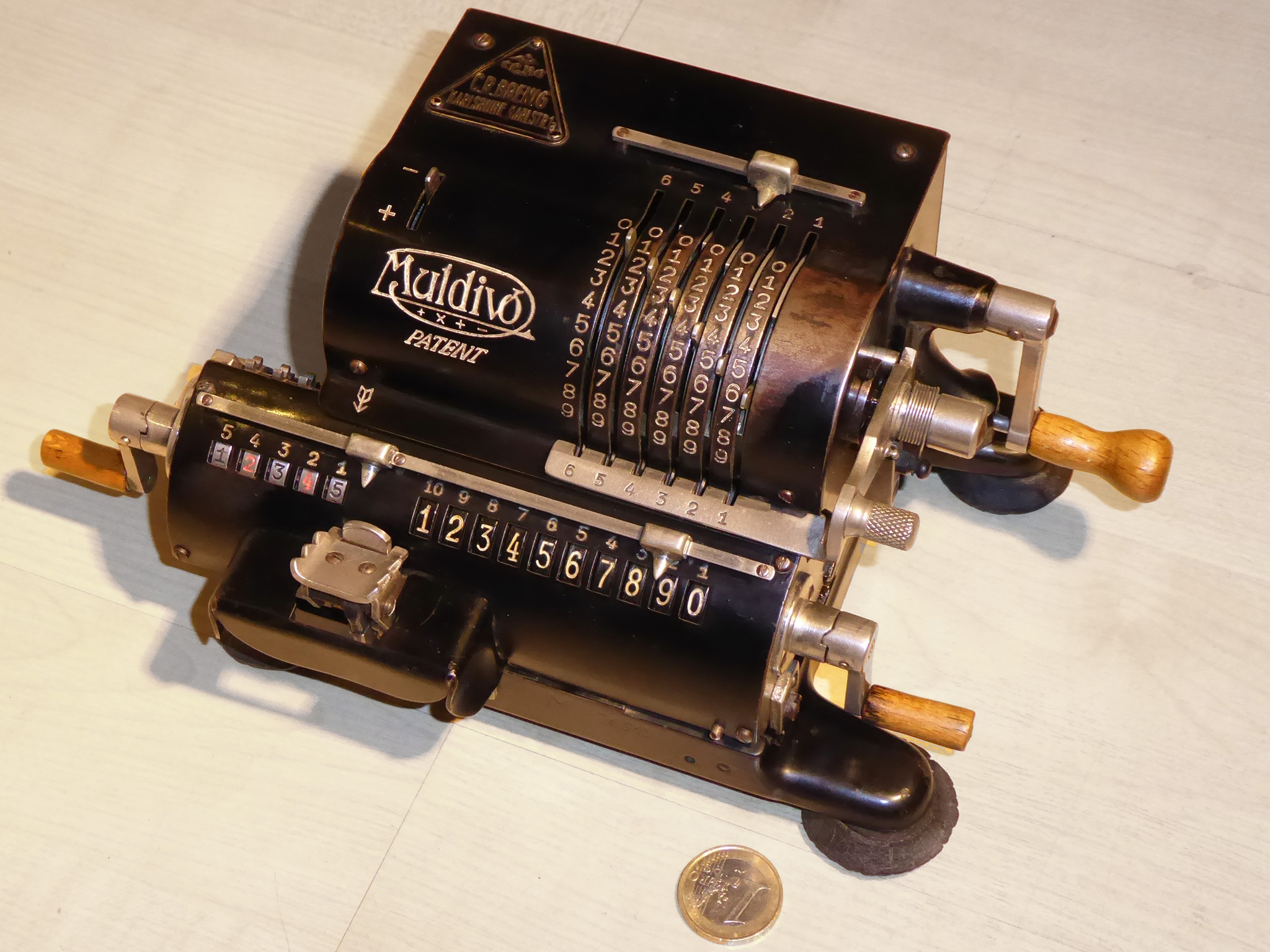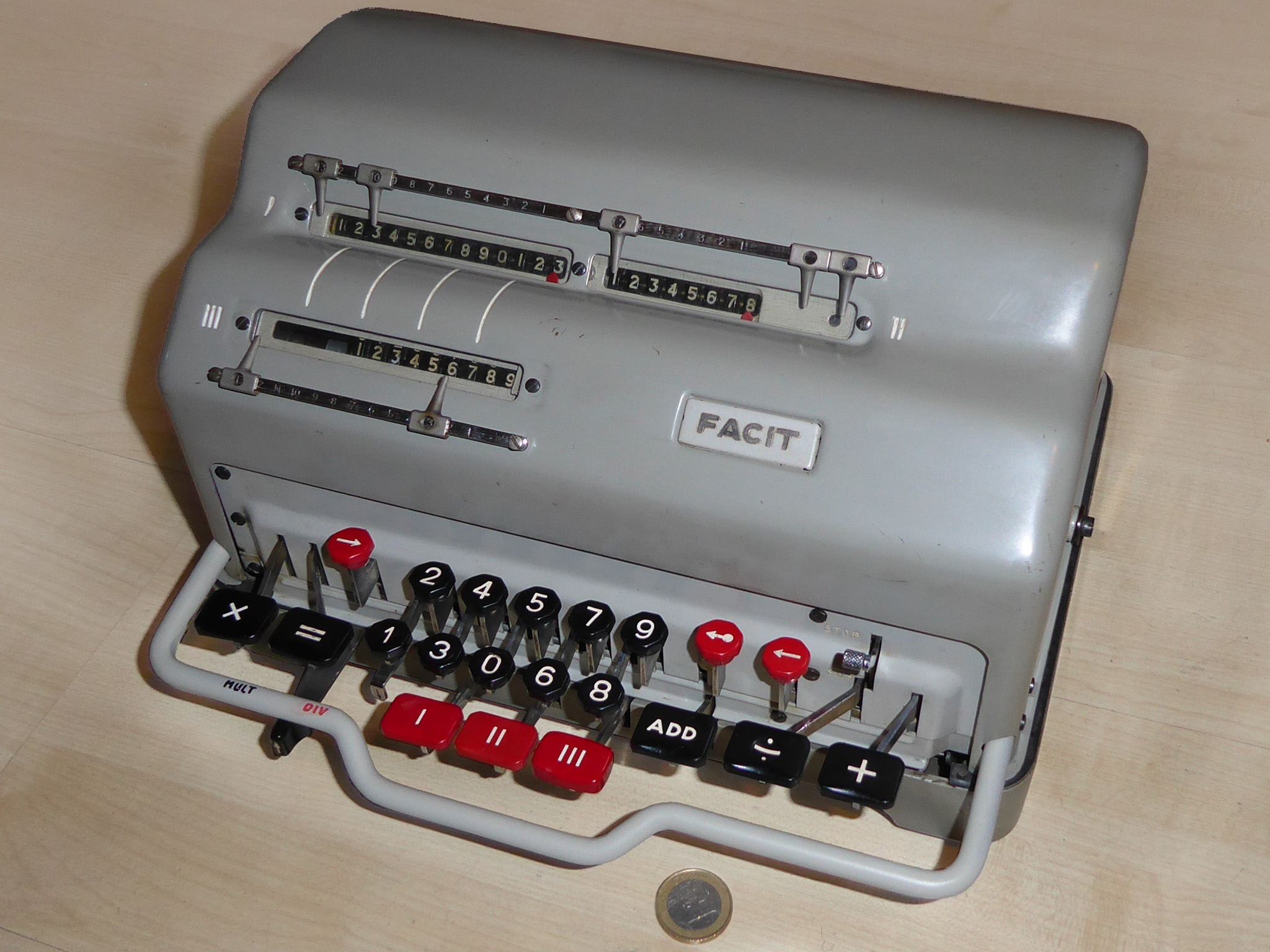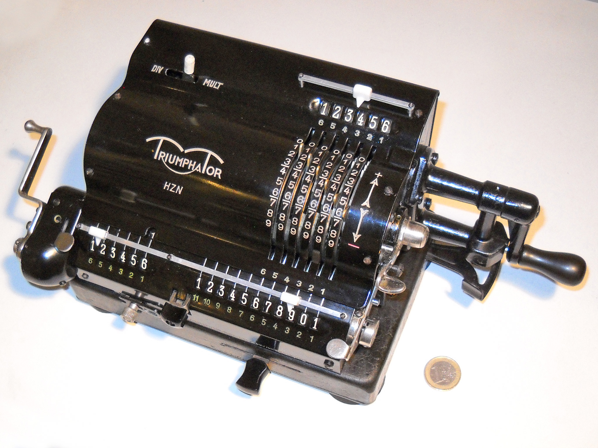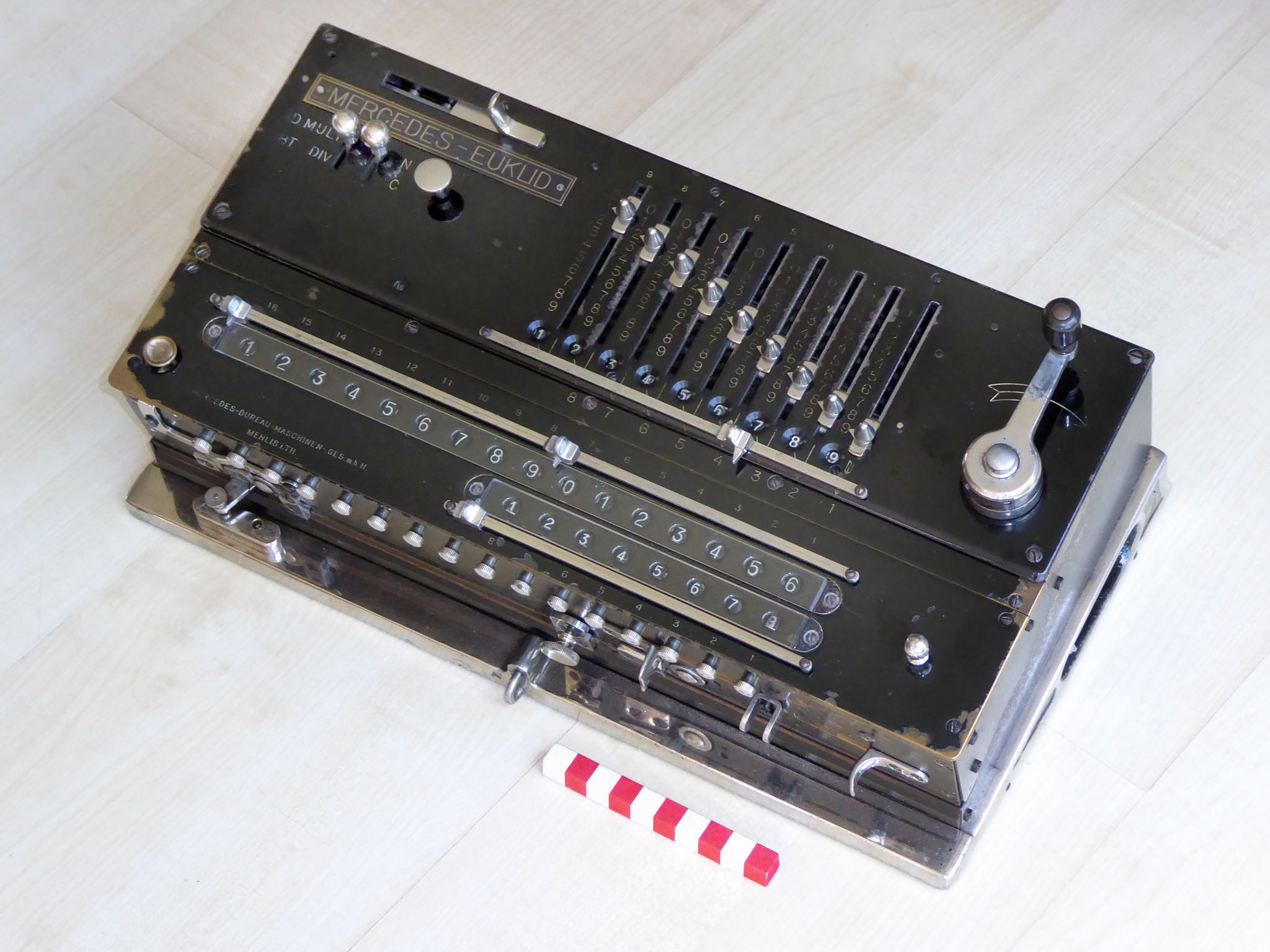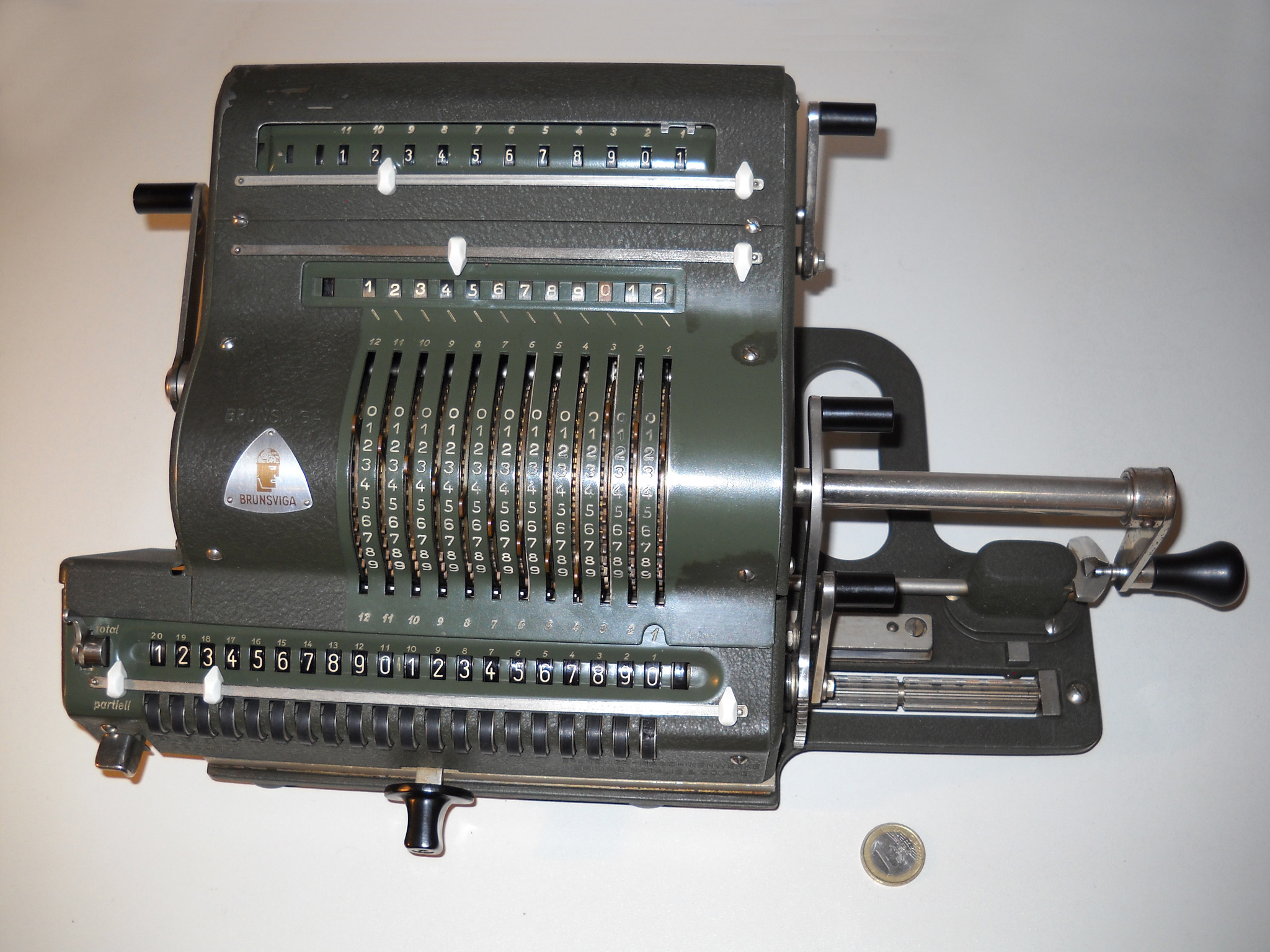 Für alle, die nicht so im Thema sind, hier die Erklärung einiger Fachbegriffe: AdditionsmodusDas Drücken der „Plus“-Taste zählt nicht nur den Wert der Eingabe zum Resultatwerk hinzu, sondern KapazitätIm Zusammenhang mit Rechenmaschinen nur ein anderes Wort für die Stellenzahl der Werke ... klingt aber gelehrter. Schalt(werks)prinzipienJede Zifferneingabe in eine Rechenmaschine muss erst irgendwie erfasst (und meist auch gespeichert) werden. Danach muss der gewünschte Wert natürlich auch seinen Weg zum Ergebnis finden. Zusätzliche Links:Youtube-Video: Staffelwalze (Schema) „Werke“ZehnerübertragWas passiert, wenn in einer Stelle "über die Neun hinaus" addiert werden muss, erklärt die Wikipedia ganz ausführlich. Aber nur die englische Wikipedia erklärt auch, warum die Mechanisierung dieses Vorgangs die größte Herausforderung beim Bau von Rechenmaschinen war. Weitere Erklärungen gewünscht? |