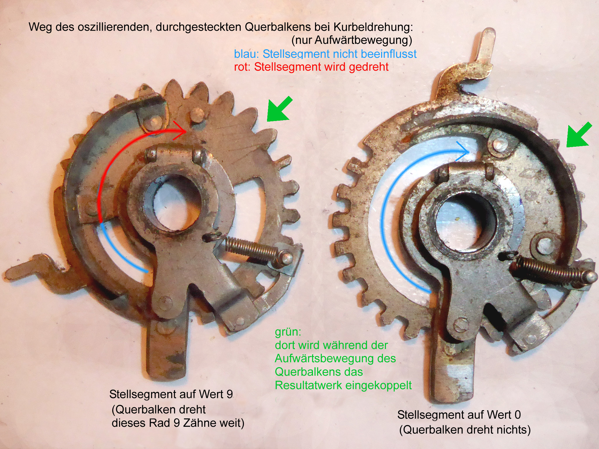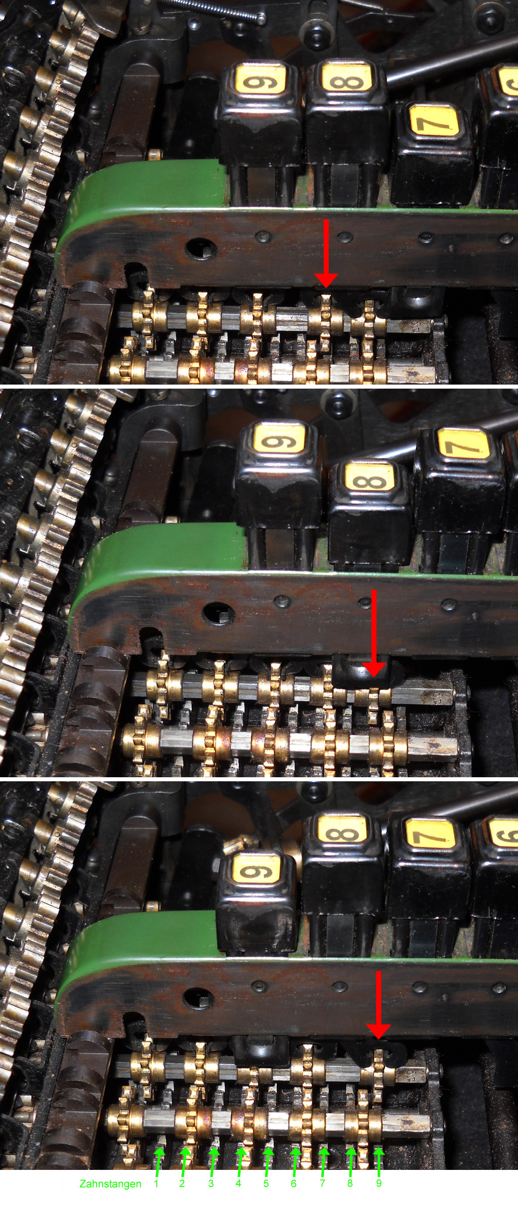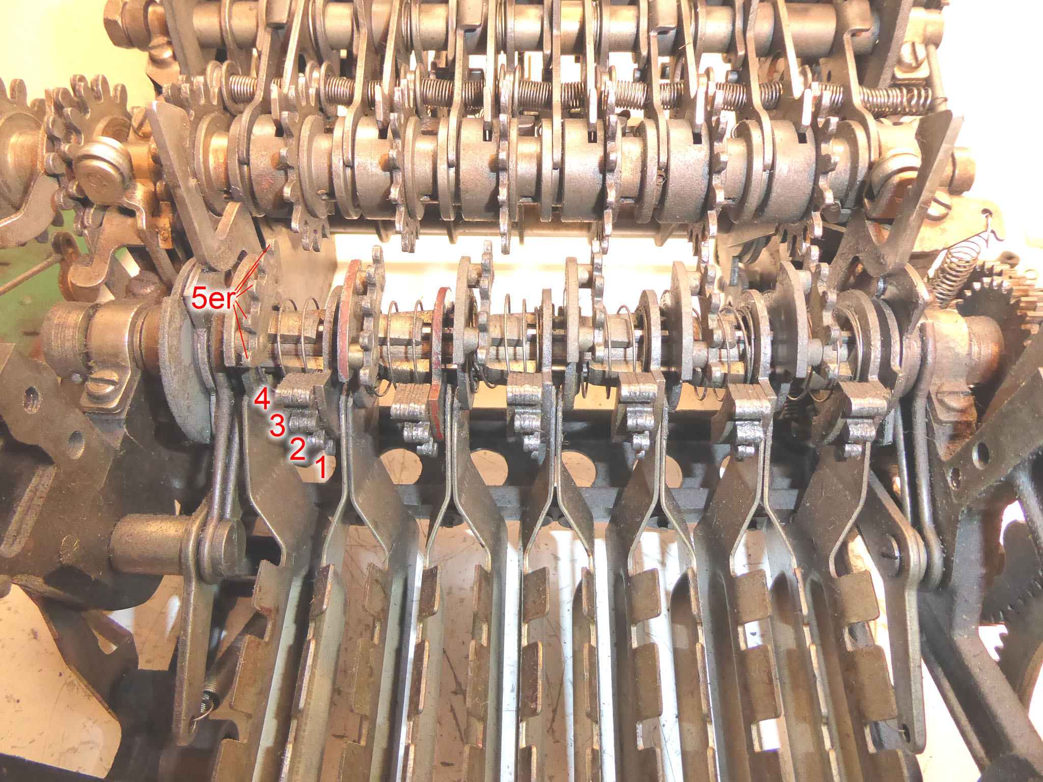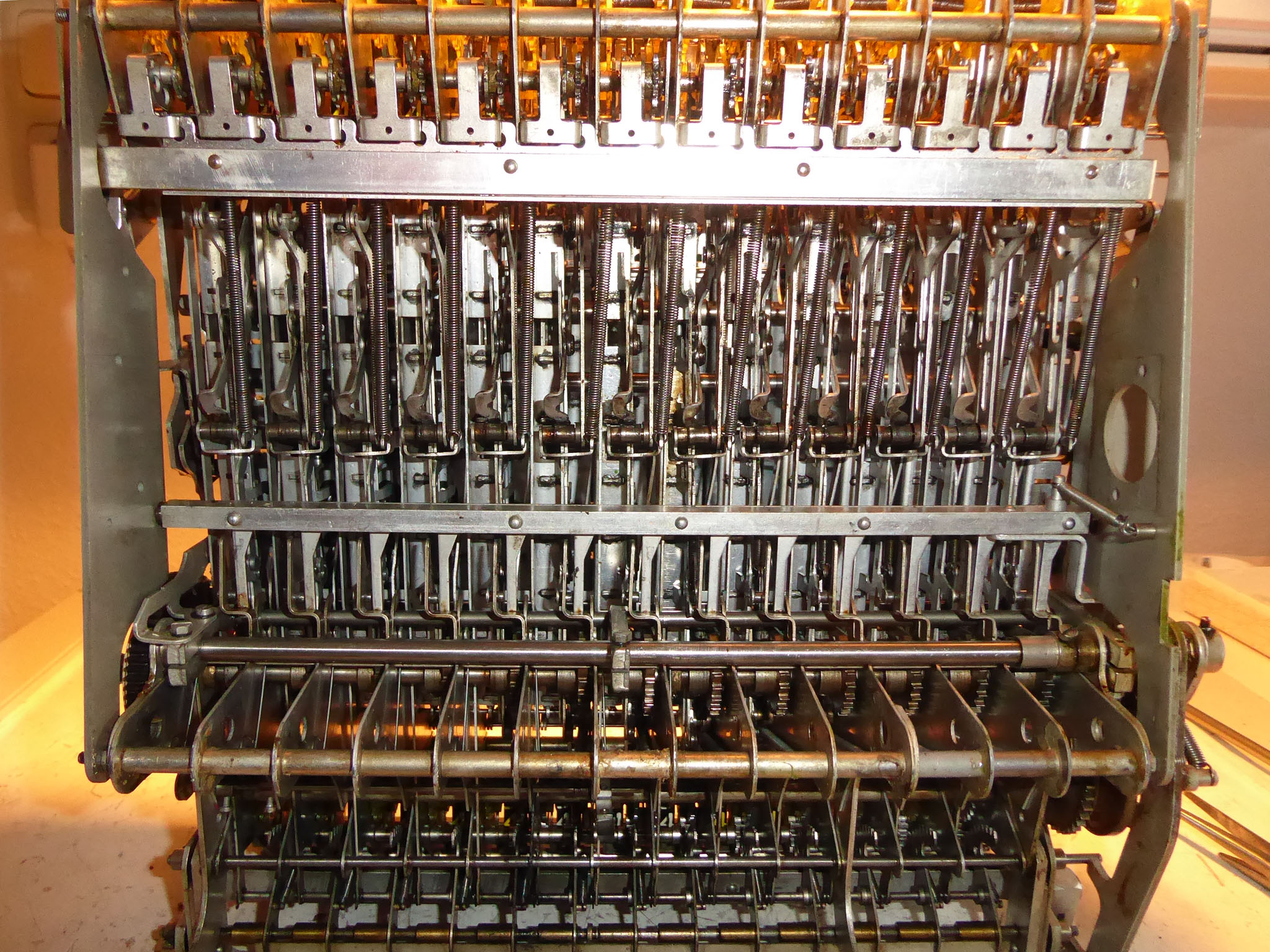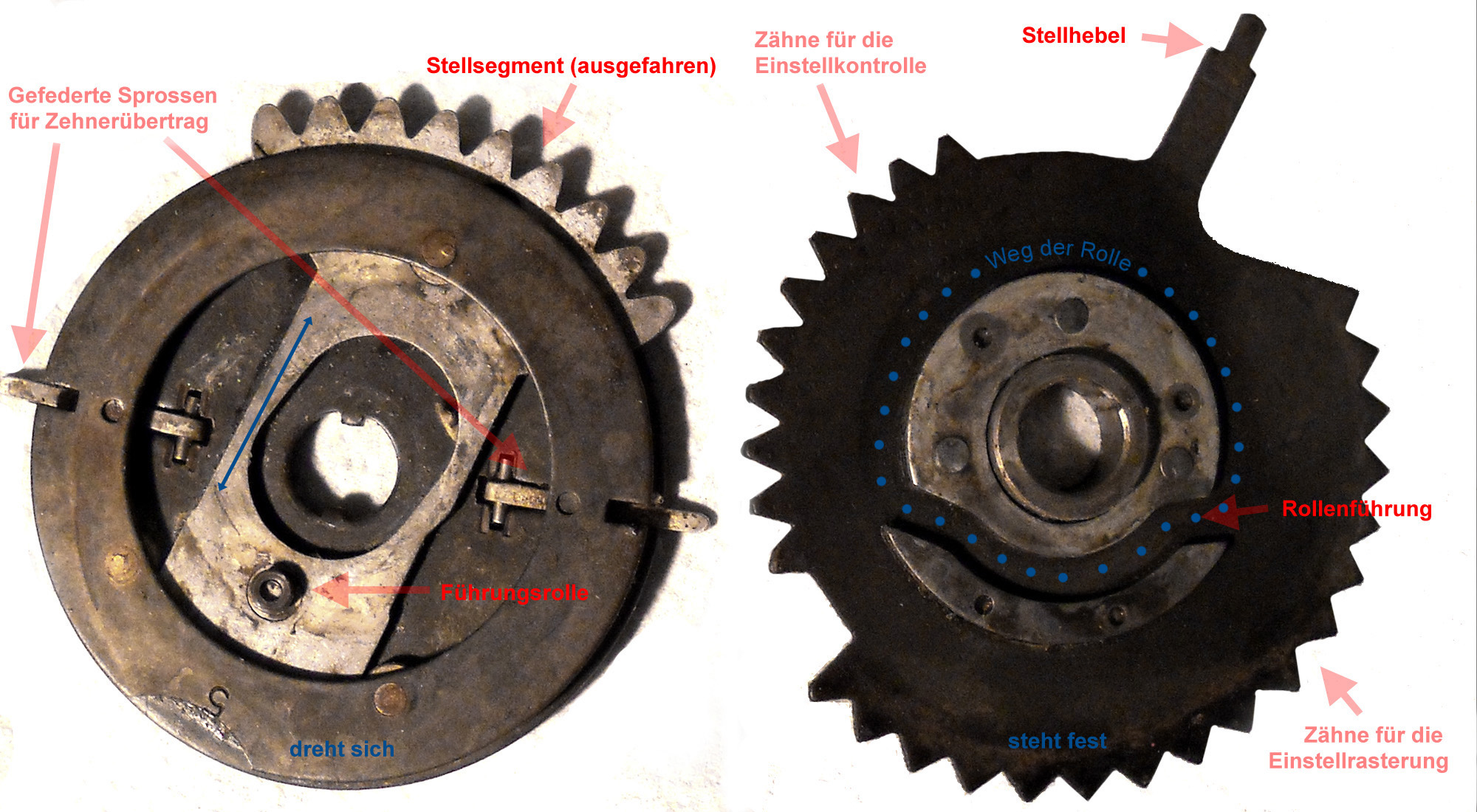 Für alle, die nicht so im Thema sind, hier die Erklärung einiger Fachbegriffe: AdditionsmodusDas Drücken der „Plus“-Taste zählt nicht nur den Wert der Eingabe zum Resultatwerk hinzu, sondern KapazitätIm Zusammenhang mit Rechenmaschinen nur ein anderes Wort für die Stellenzahl der Werke ... klingt aber gelehrter. Schalt(werks)prinzipienJede Zifferneingabe in eine Rechenmaschine muss erst irgendwie erfasst (und meist auch gespeichert) werden. Danach muss der gewünschte Wert natürlich auch seinen Weg zum Ergebnis finden. Zusätzliche Links:Youtube-Video: Staffelwalze (Schema) „Werke“ZehnerübertragWas passiert, wenn in einer Stelle "über die Neun hinaus" addiert werden muss, erklärt die Wikipedia ganz ausführlich. Aber nur die englische Wikipedia erklärt auch, warum die Mechanisierung dieses Vorgangs die größte Herausforderung beim Bau von Rechenmaschinen war. Weitere Erklärungen gewünscht? |