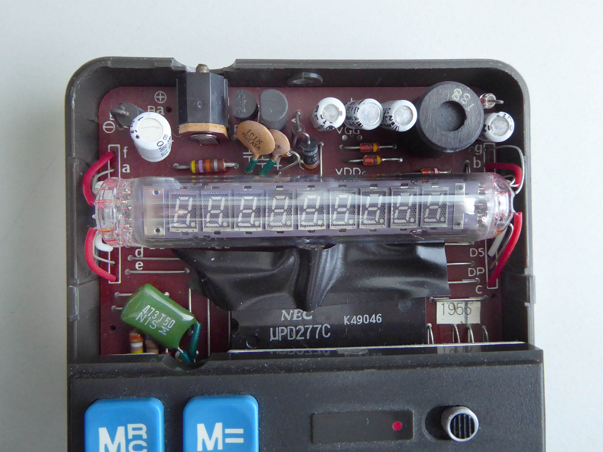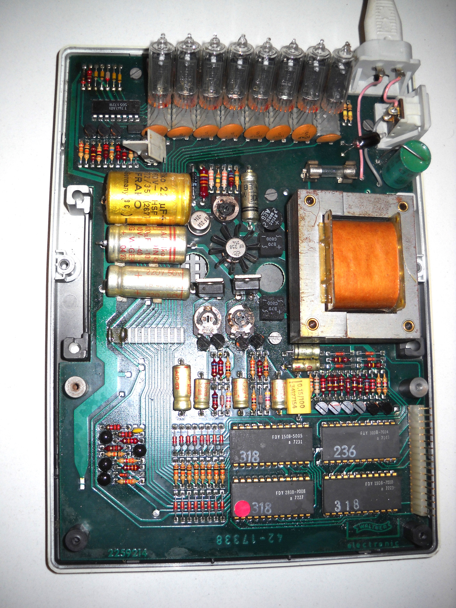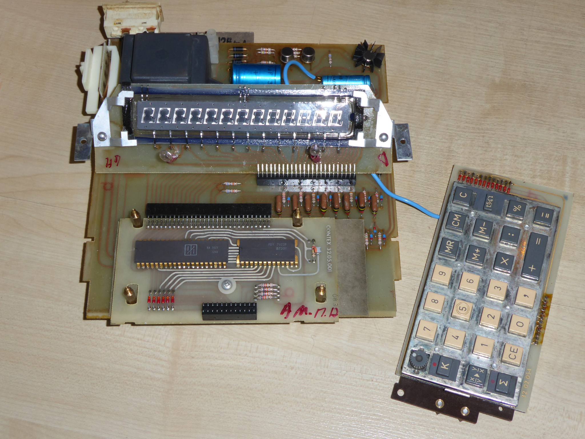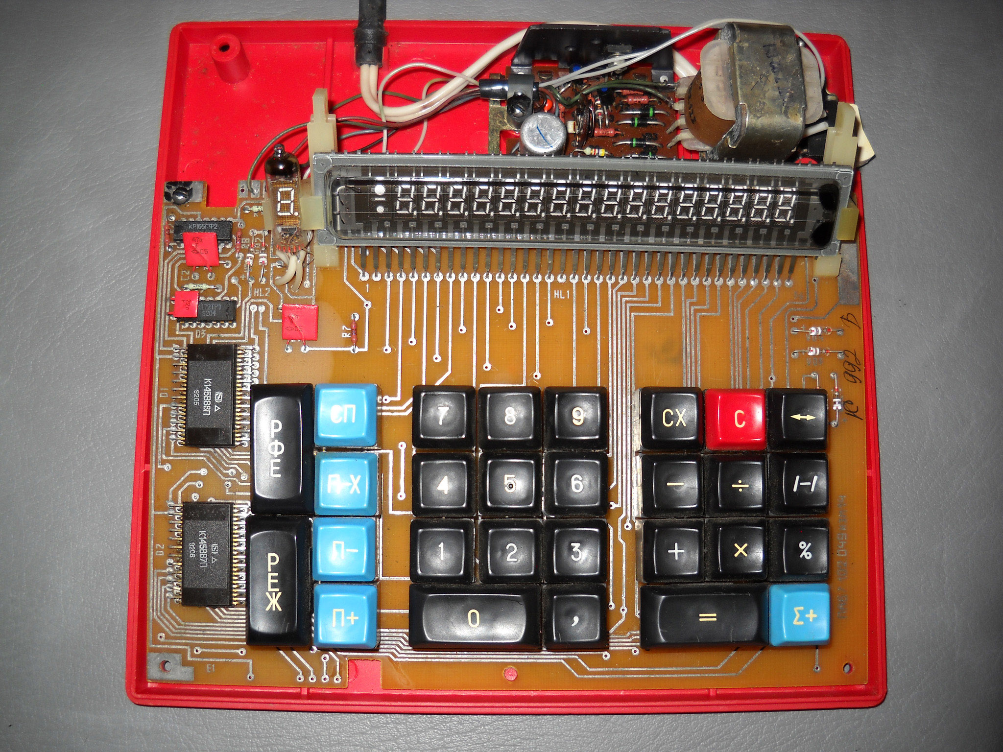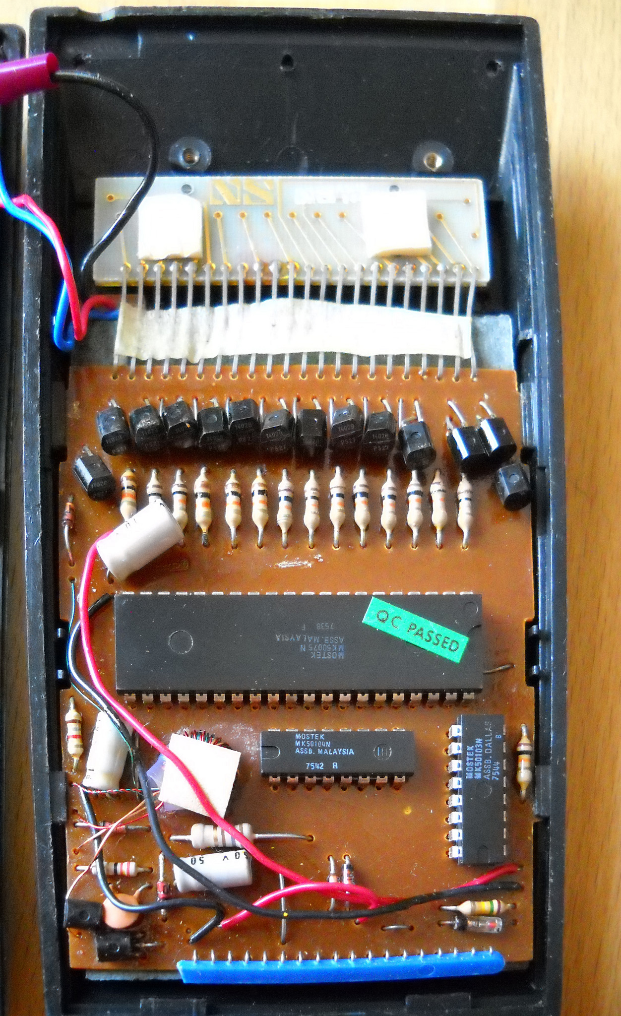 Rebell (die Marke gibt es auch heute noch, sie wurde aber von der tschechischen Moravia aufgekauft) hat diesen Rechner nicht gebaut, sondern als OEM‑Ware vertrieben, daher weiß ich nichts über den wirklichen Hersteller. „Made in China“ sagt das Etikett ... und die Platinenbeschriftung bringt auch keine Klarheit. |
