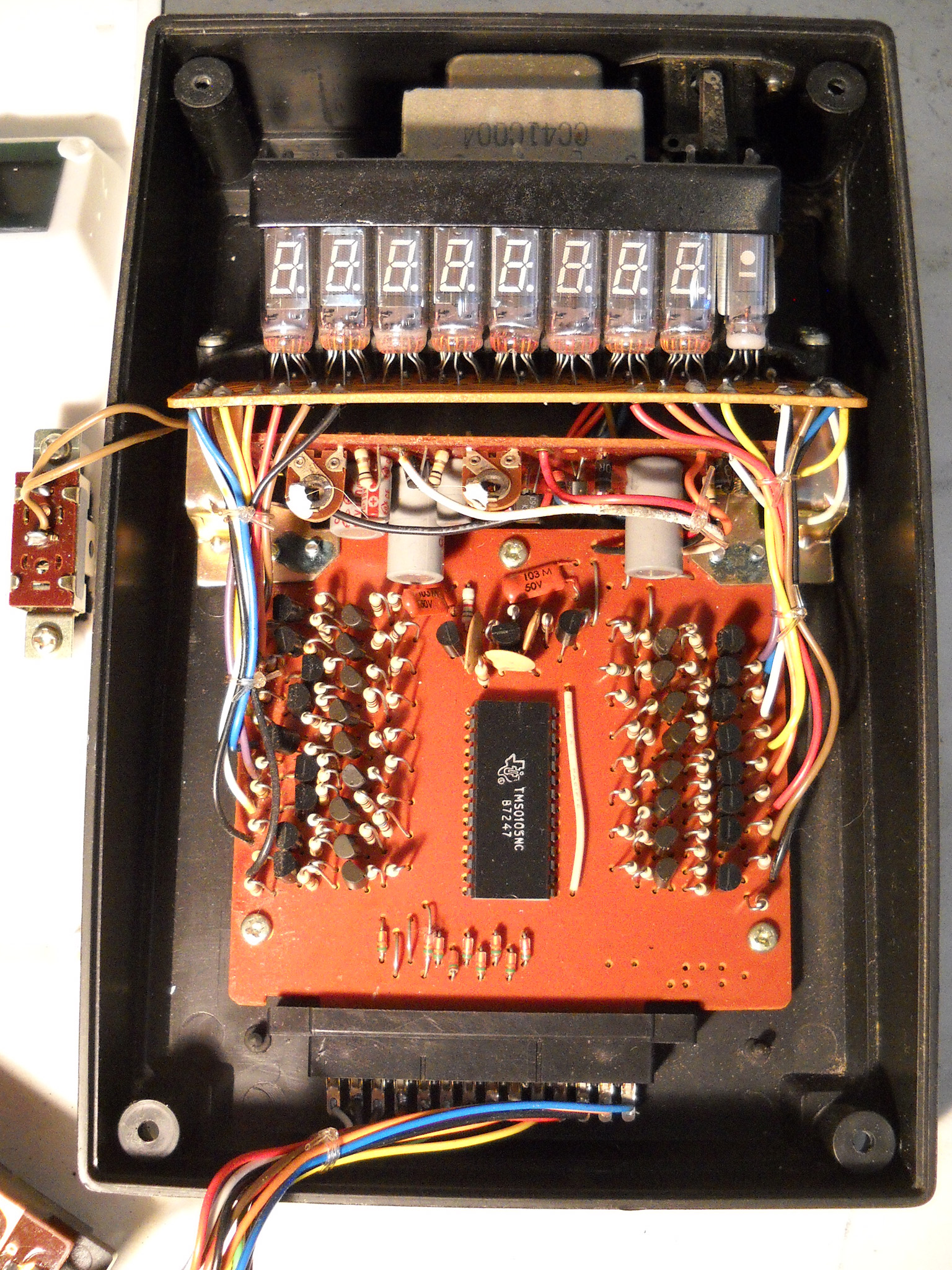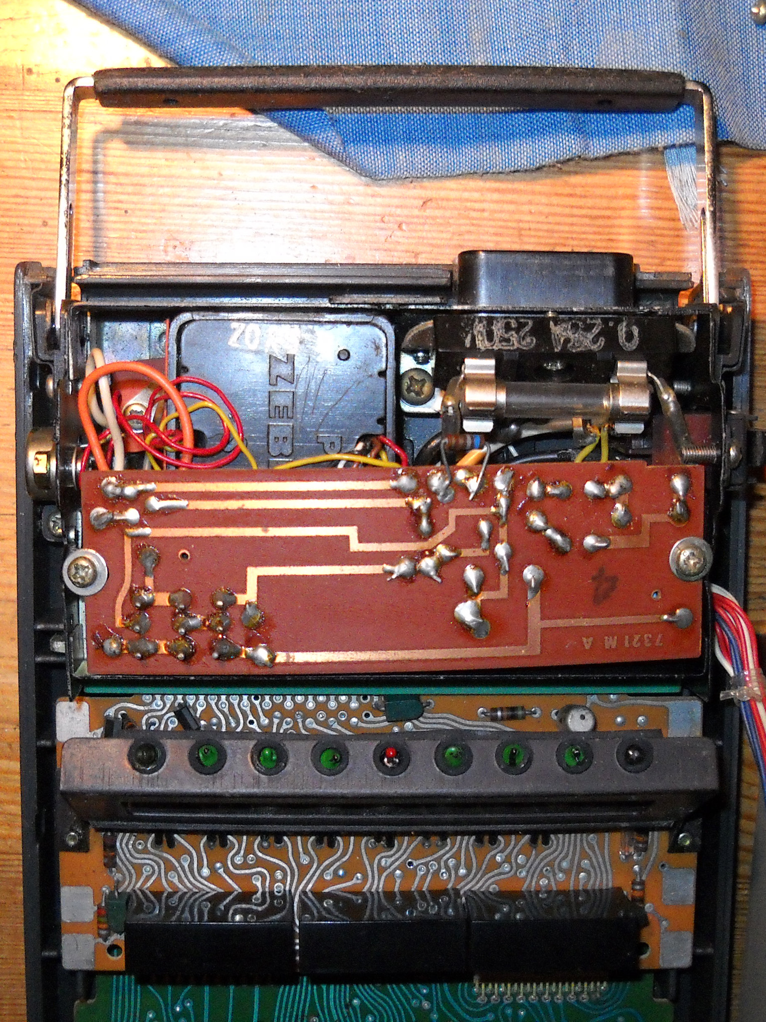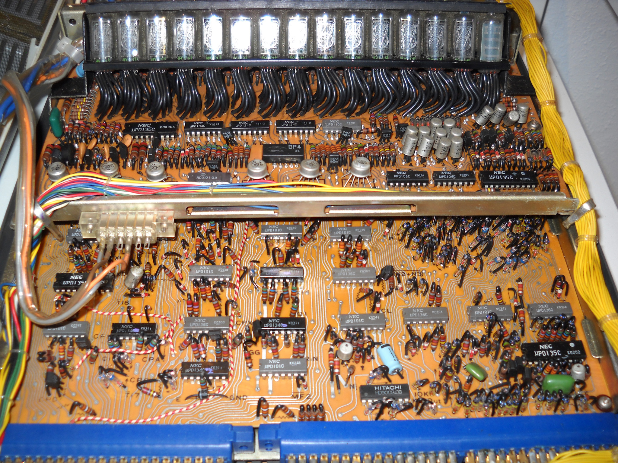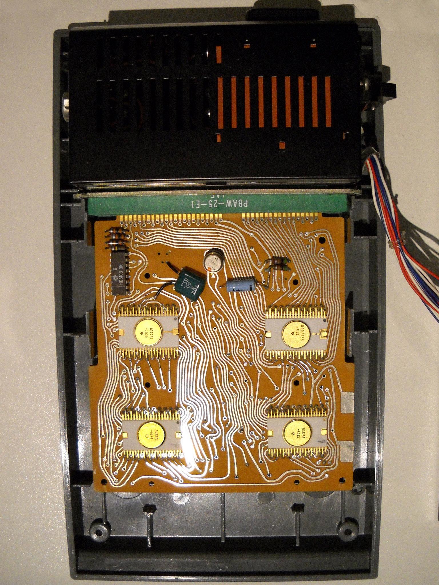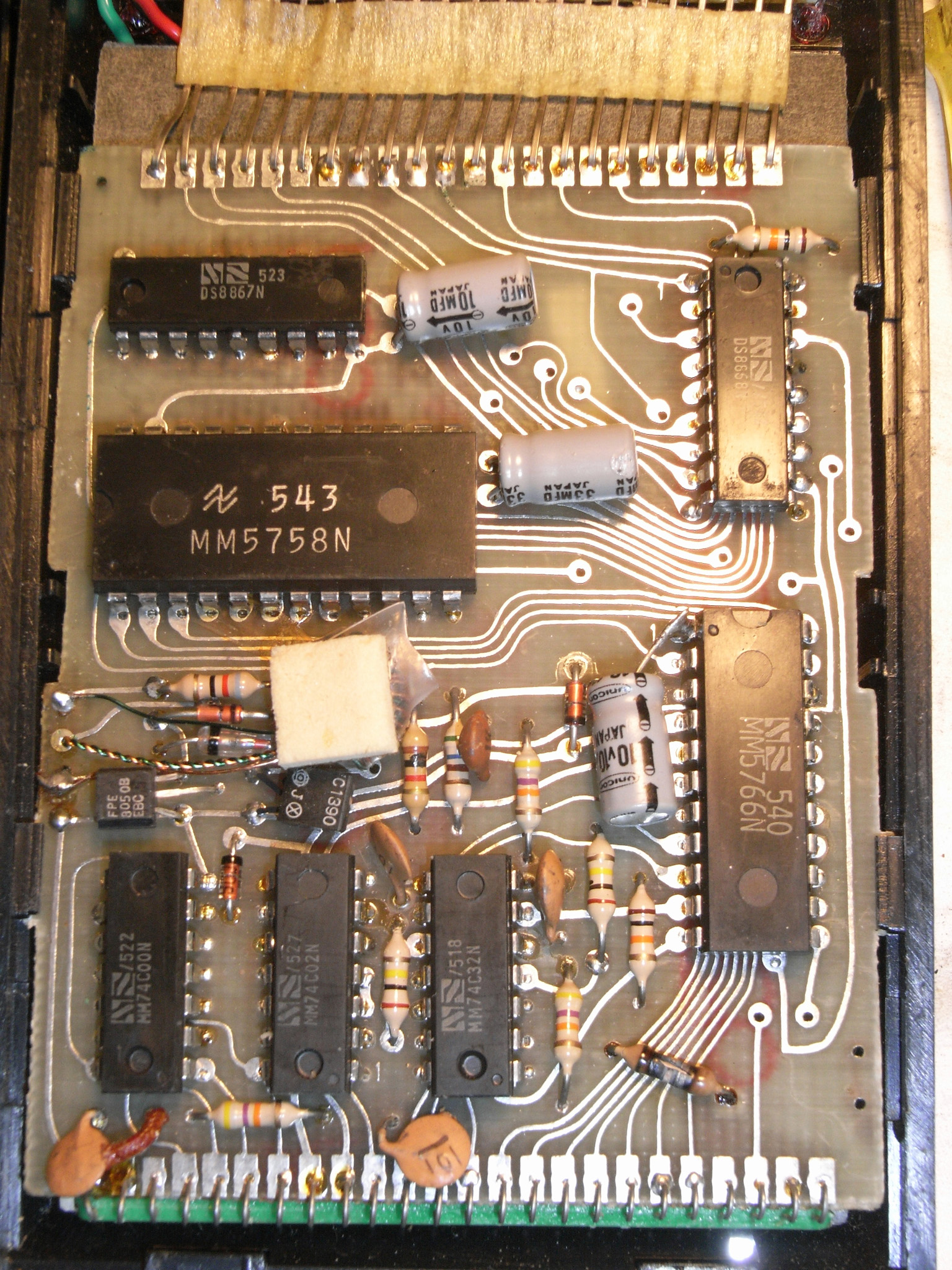 Rebell (die Marke gibt es auch heute noch, sie wurde aber von der tschechischen Moravia aufgekauft) hat diesen Rechner nicht gebaut, sondern als OEM‑Ware vertrieben, daher weiß ich nichts über den wirklichen Hersteller. „Made in China“ sagt das Etikett ... und die Platinenbeschriftung bringt auch keine Klarheit. |