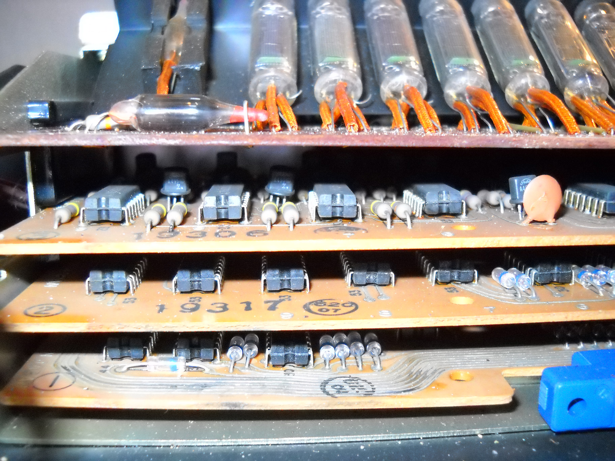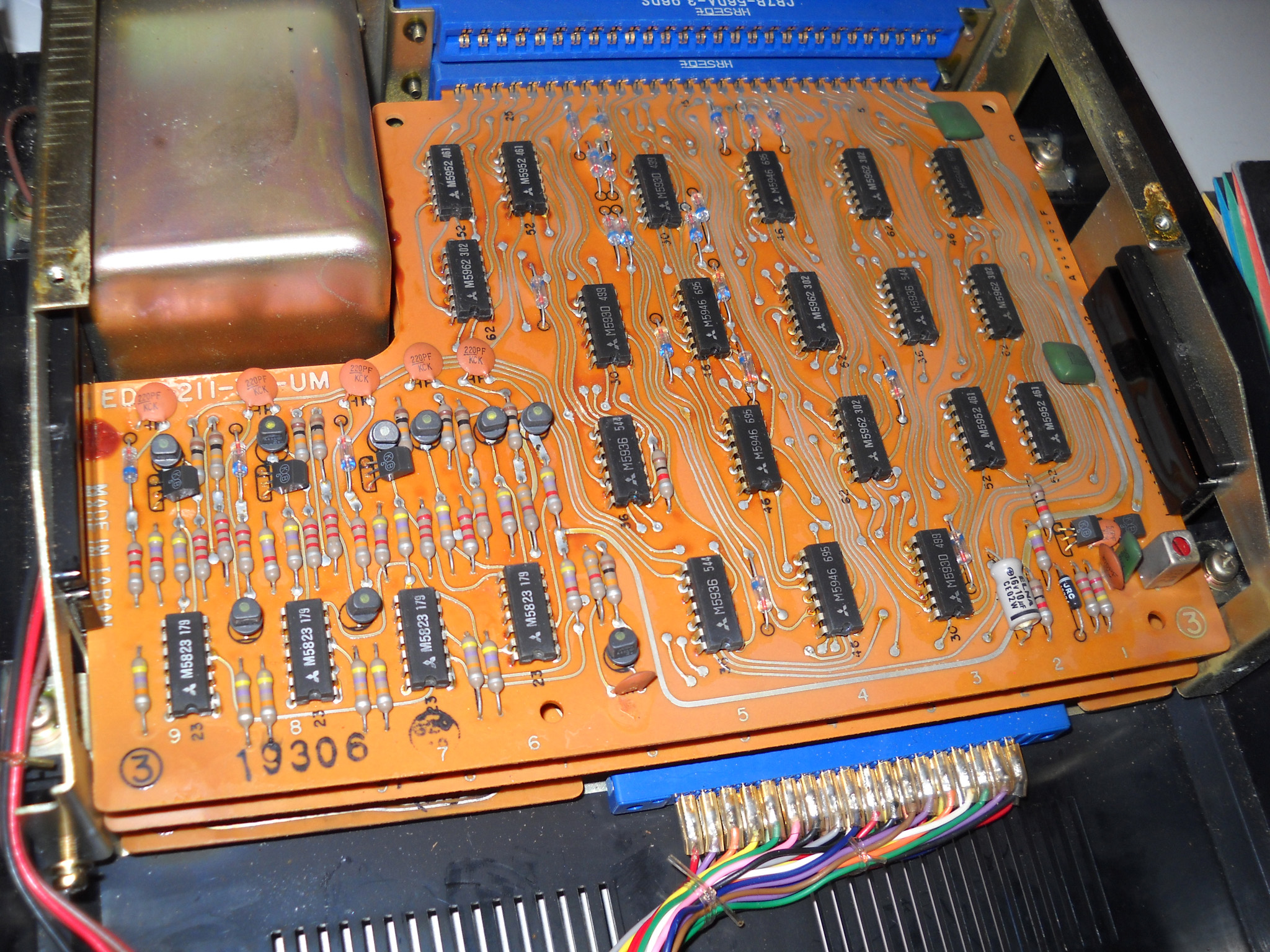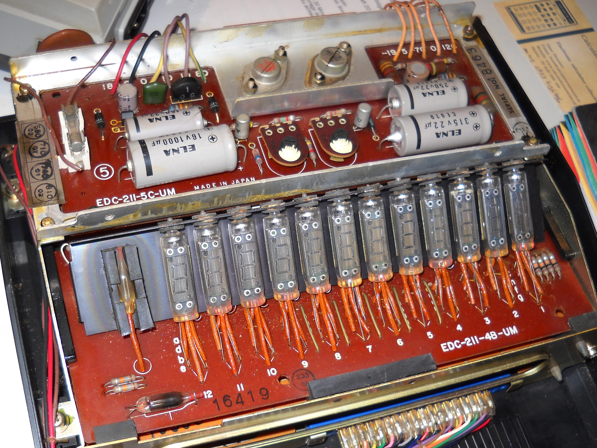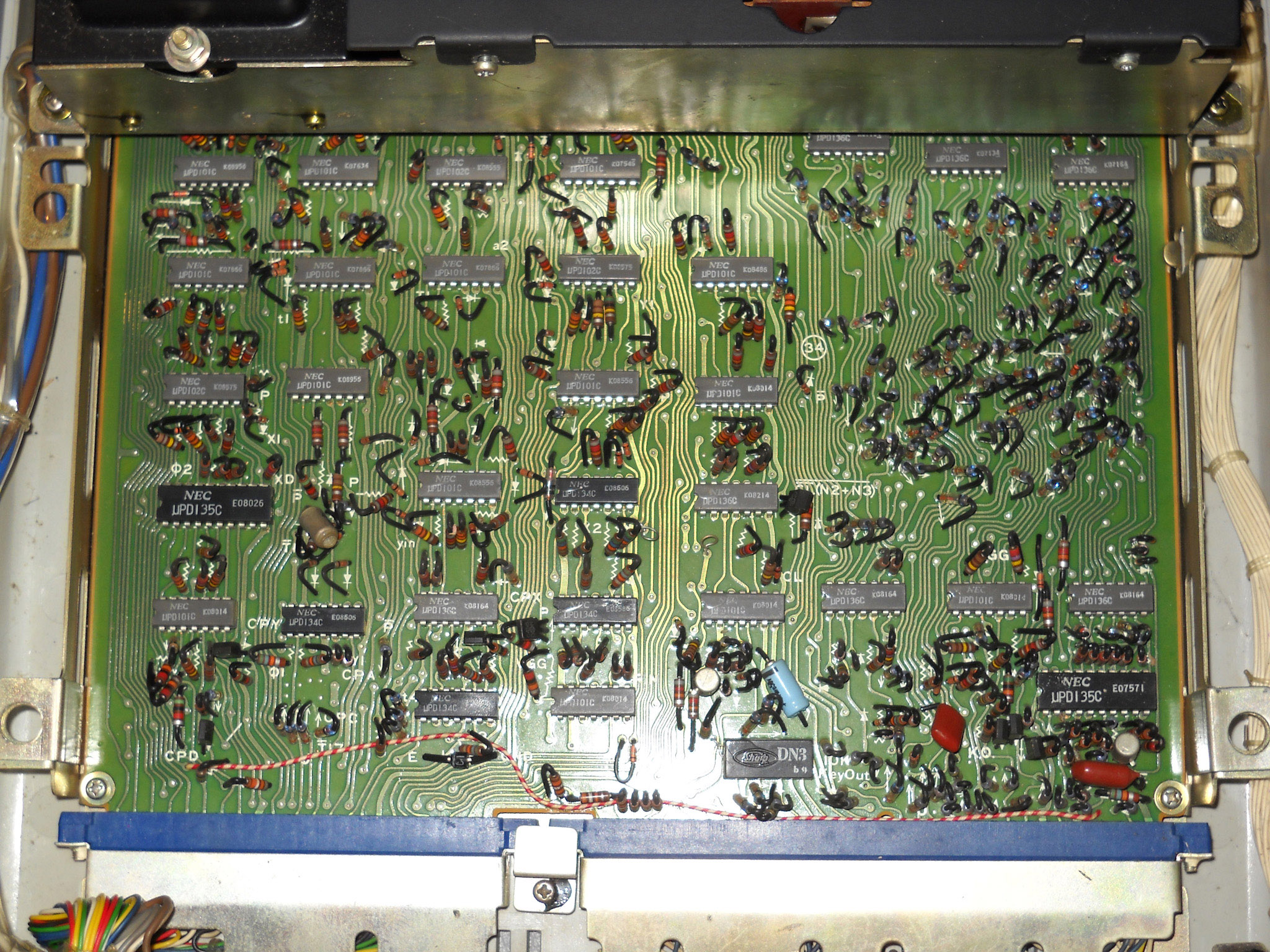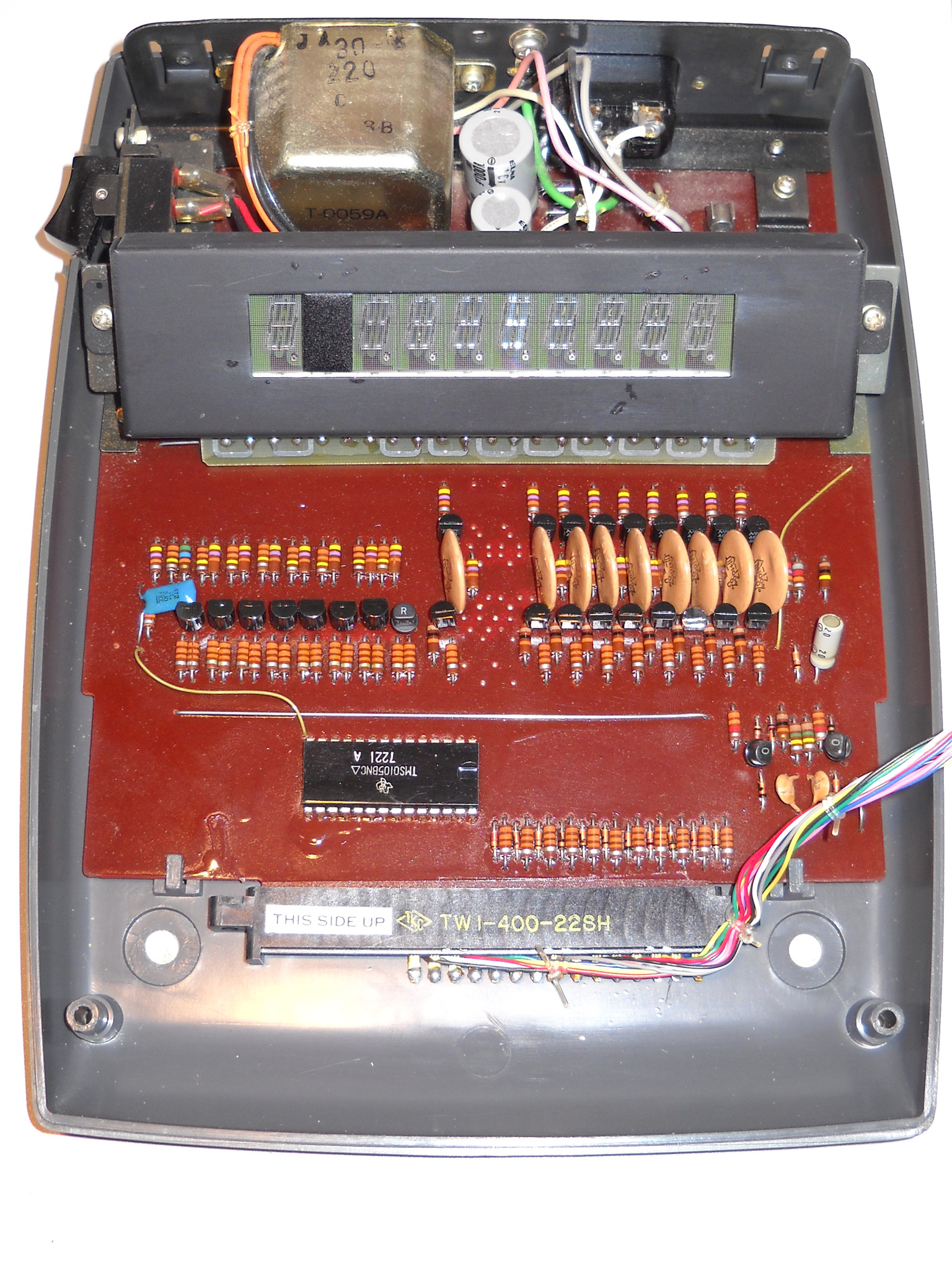 Rebell (die Marke gibt es auch heute noch, sie wurde aber von der tschechischen Moravia aufgekauft) hat diesen Rechner nicht gebaut, sondern als OEM‑Ware vertrieben, daher weiß ich nichts über den wirklichen Hersteller. „Made in China“ sagt das Etikett ... und die Platinenbeschriftung bringt auch keine Klarheit. |