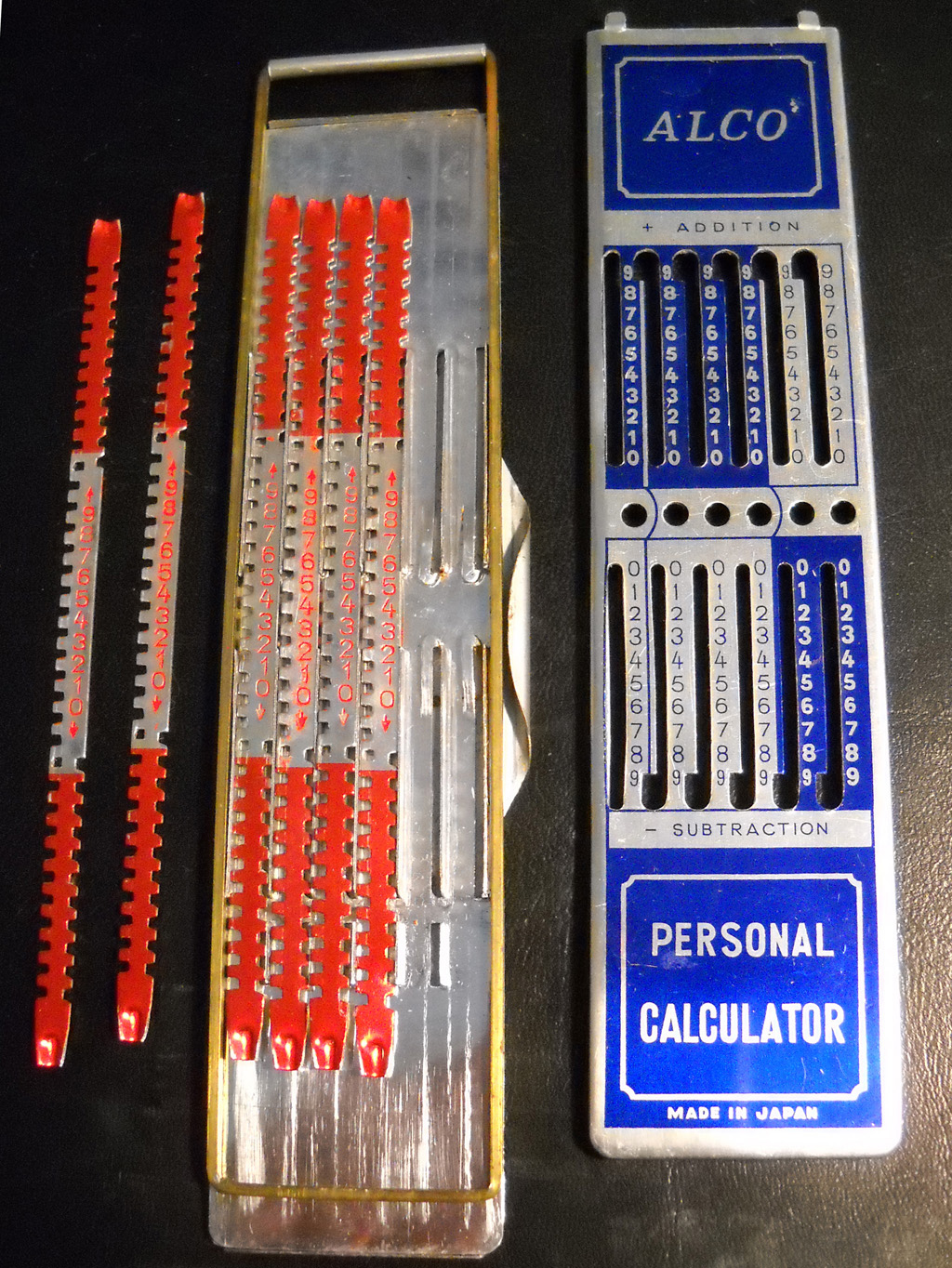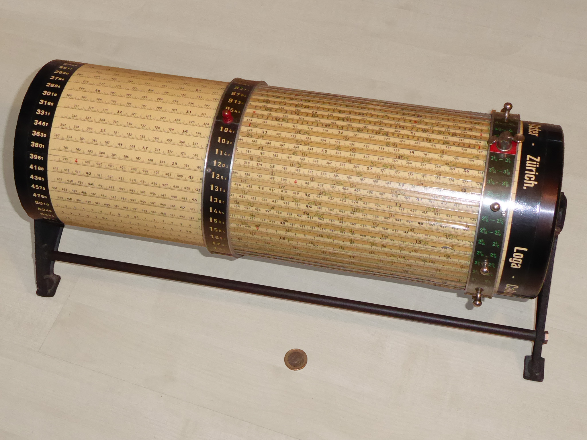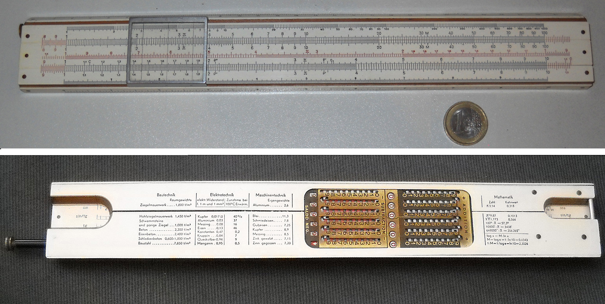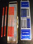 Die ältesten „Rechenhilfen“ der Menschheit sind sicher die eigenen Finger. Irgendwann fing man an, Stöckchen, Steinchen, Muscheln usw. zu benutzen. Spätestens die Sumerer entwickelten dann Regeln für deren Benutzung: Sie ritzten oder malten Linien für unterschiedliche Wertstufen (z.B. 1 ‑ 12 ‑ 60 - ...) auf Steintafeln, Bretter oder auch Tischplatten und legten dann entsprechend mehr oder weniger Kieselsteinchen auf diese Linien. mehr zu den ZahlenschiebernSchon früh wurden diese kleinen, billigen Rechenhilfen „für Jedermann“ entwickelt und vertrieben. mehr zu den RechenschiebernBereits 1632 hatte William Oughtred die Idee, zwei gegeneinander verschiebbare logarithmische Skalen als Rechenhilfe zu benutzen. Das Prinzip wurde bald weiterentwickelt, die Rechenschieber gab es als Stäbe und Scheiben, später auch als Zylinder mit spiralig angeordneter Skala und als Roste bzw. Walzen mit unterteilten, sehr langen Skalen. Besonders die Rechenstäbe waren sehr verbreitet und wurden spätestens um 1900 DAS Statussymbol für jeden Ingenieur (so ähnlich wie heute noch das Stethoskop für Ärzte). Auch in vielen Schulen wurde die Benutzung gelehrt. Für spezielle Anwendungen gab es auch Geräte mit eigens angepassten Skalen.