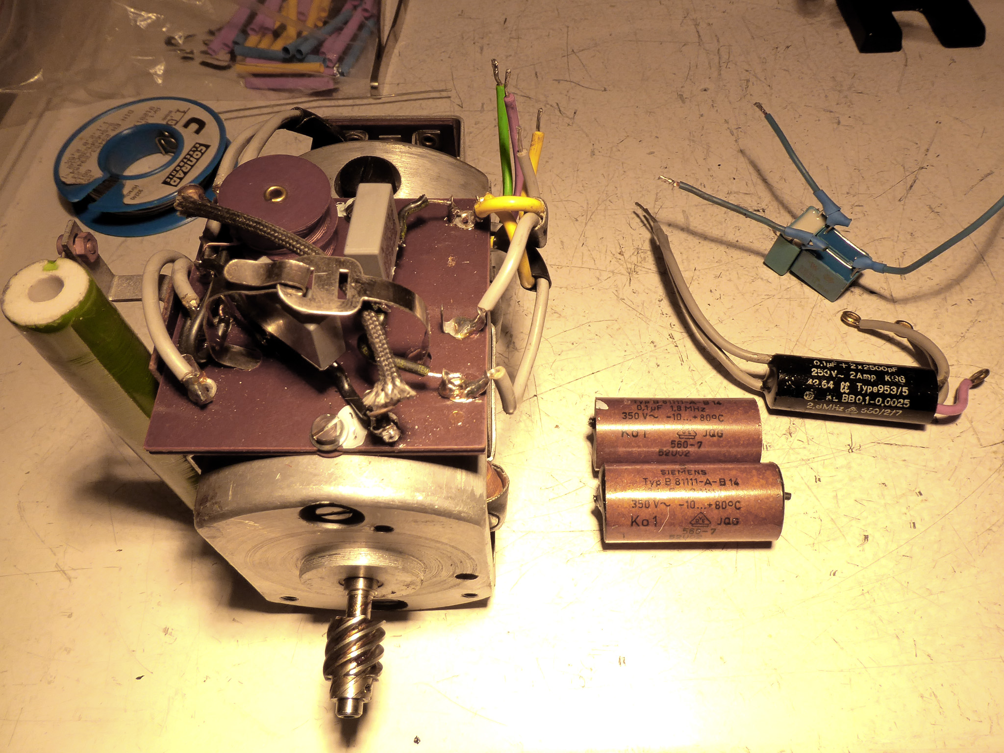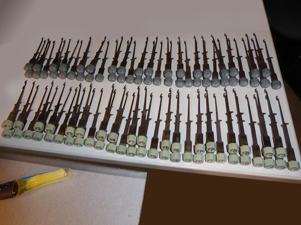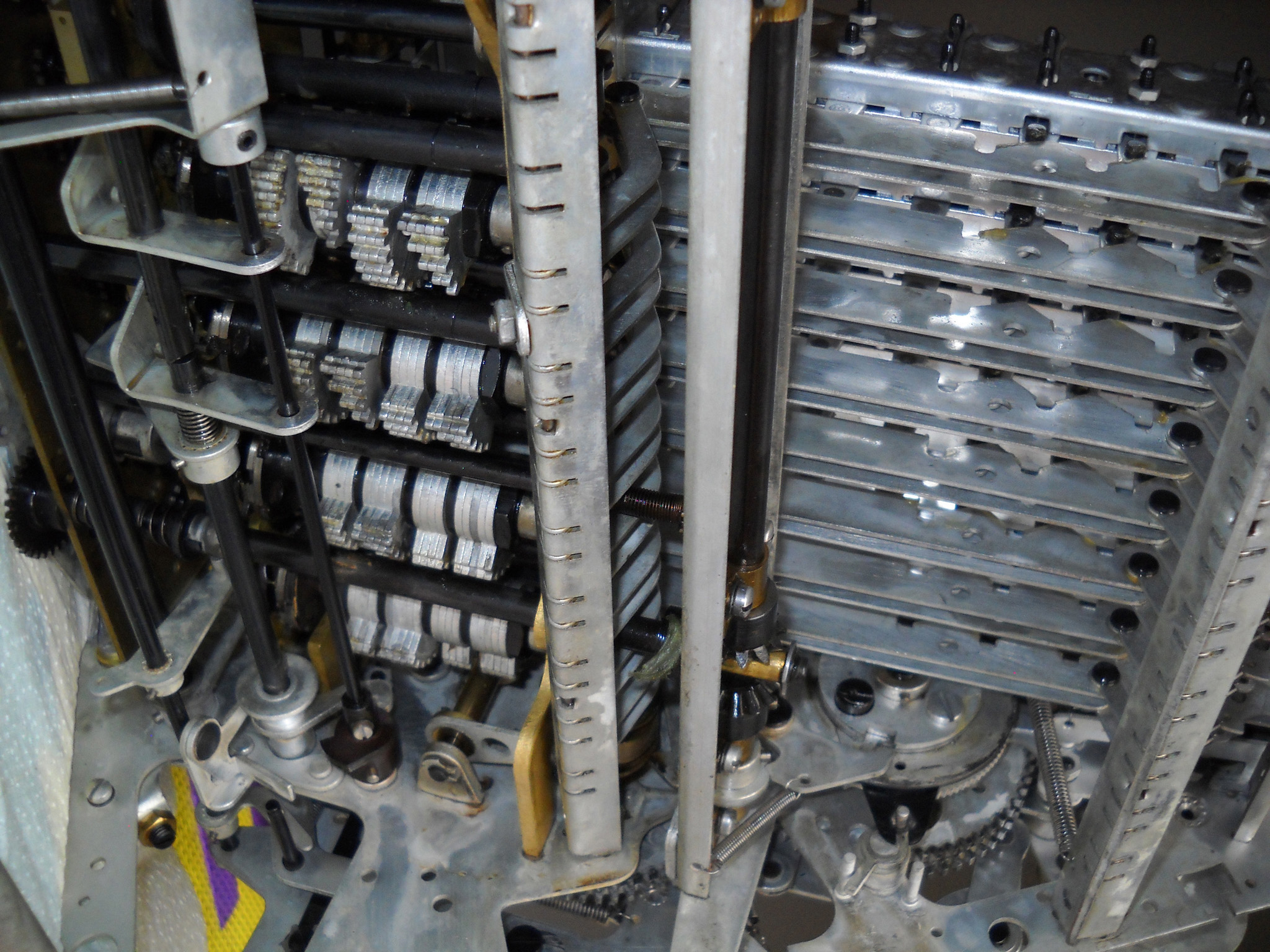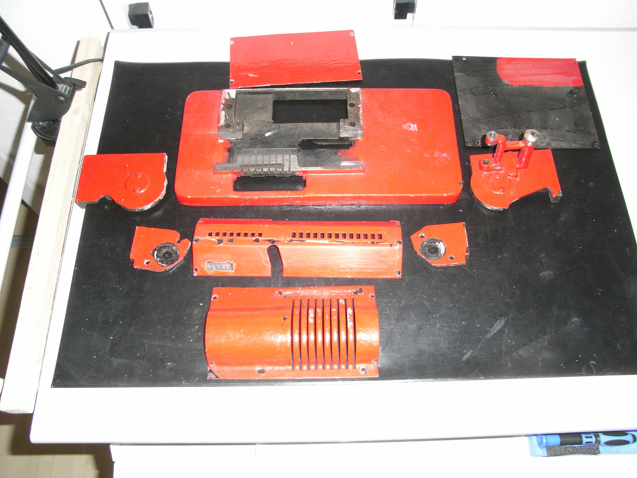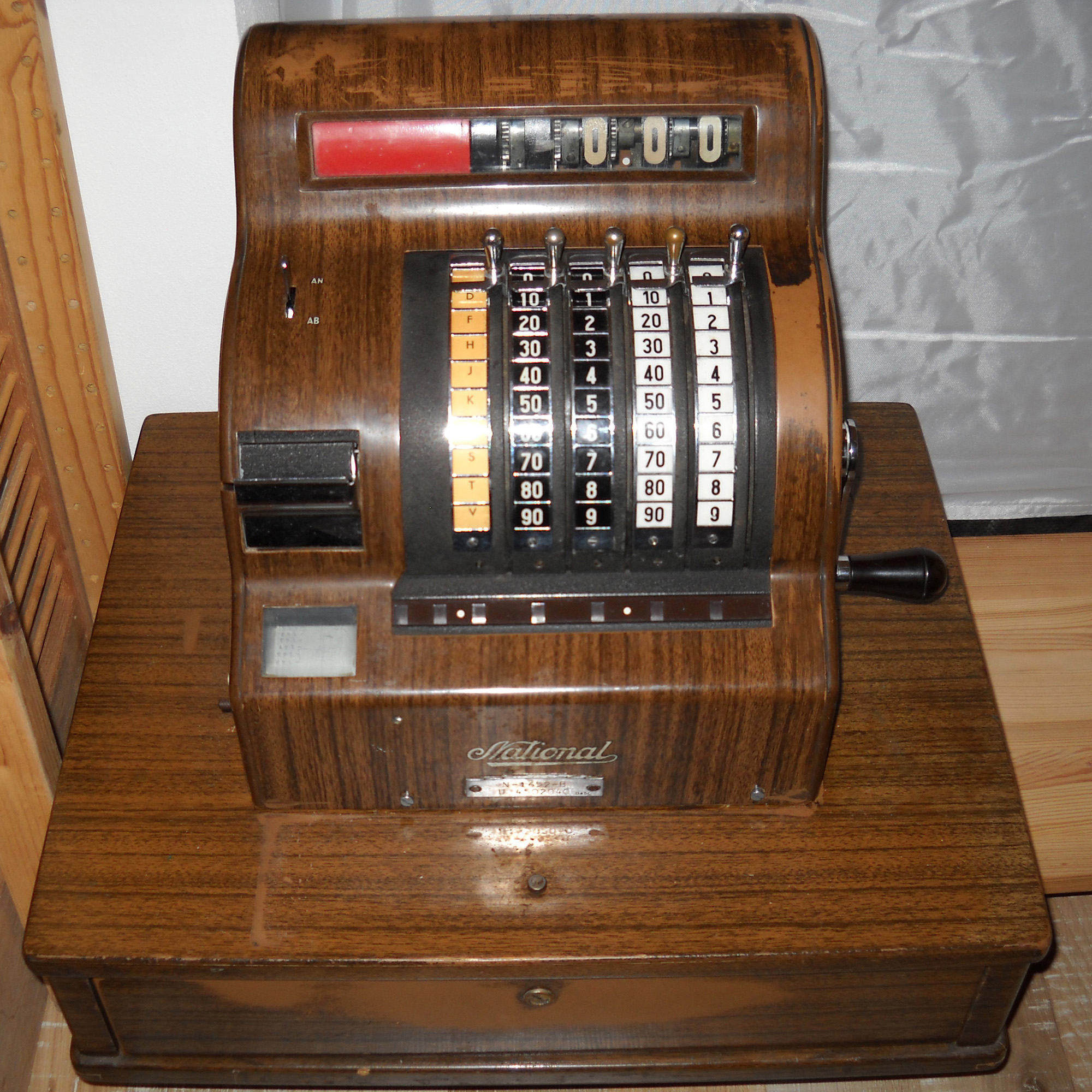 Feder der RW-Löschung eingehängt, defekte Rückdrehsperre neu gesplintet, Ziffern im ZW neu eingelegt, unpassende Schraube der ZW-Löschkurbel ersetzt, Stifte der Kommastecker nachgearbeitet, vergraute Pappe unter dem Glas ersetzt. Im Holzkasten, mit Schlüssel und vier Kommasteckern. Französische Anleitung im Netz gefunden. |