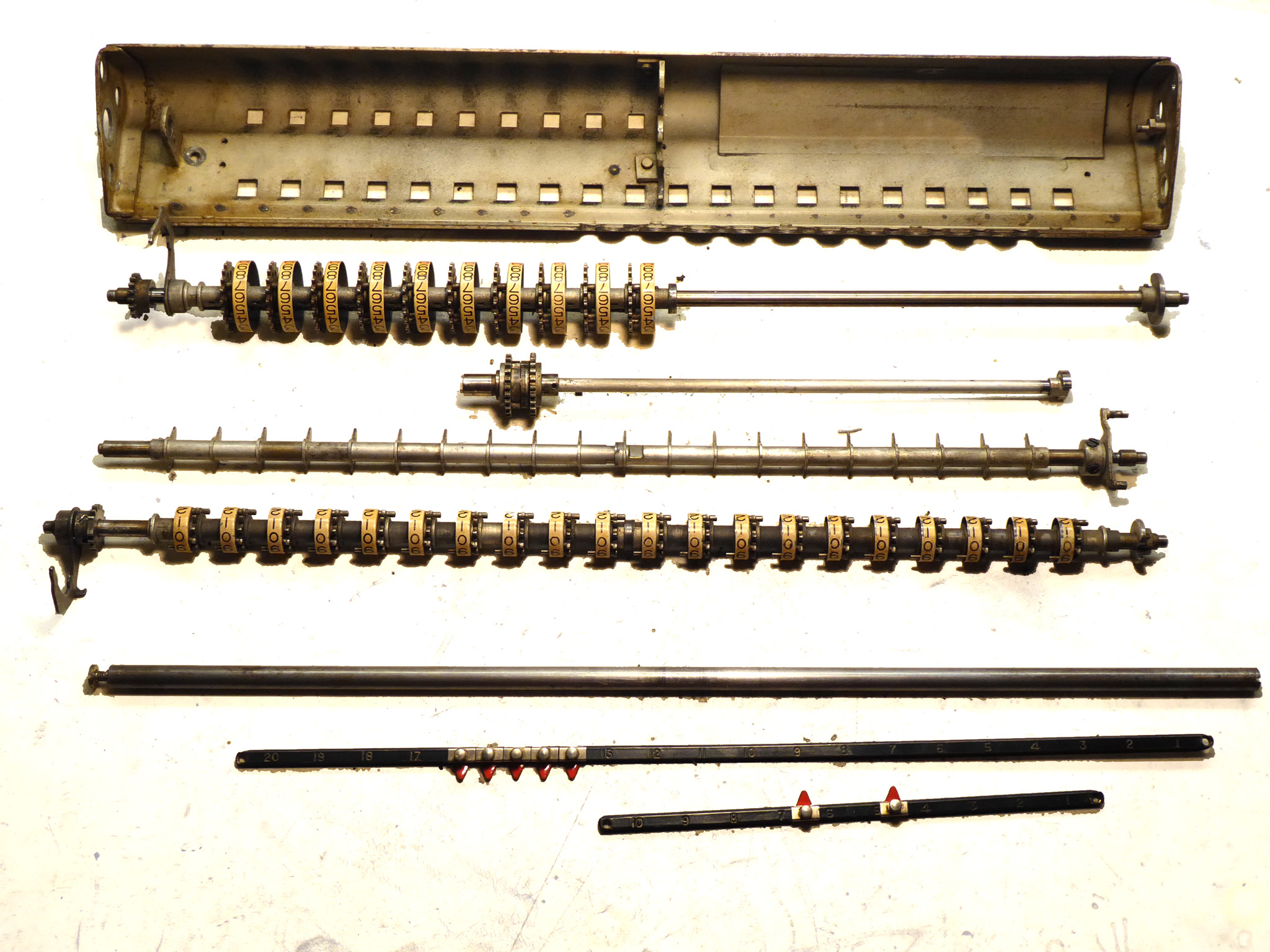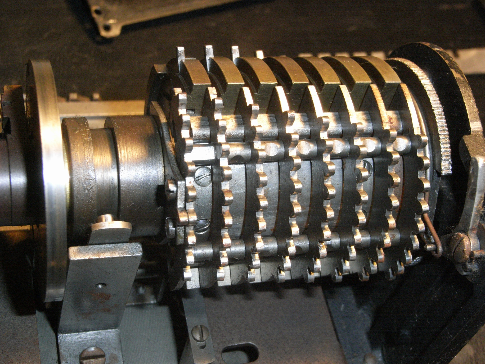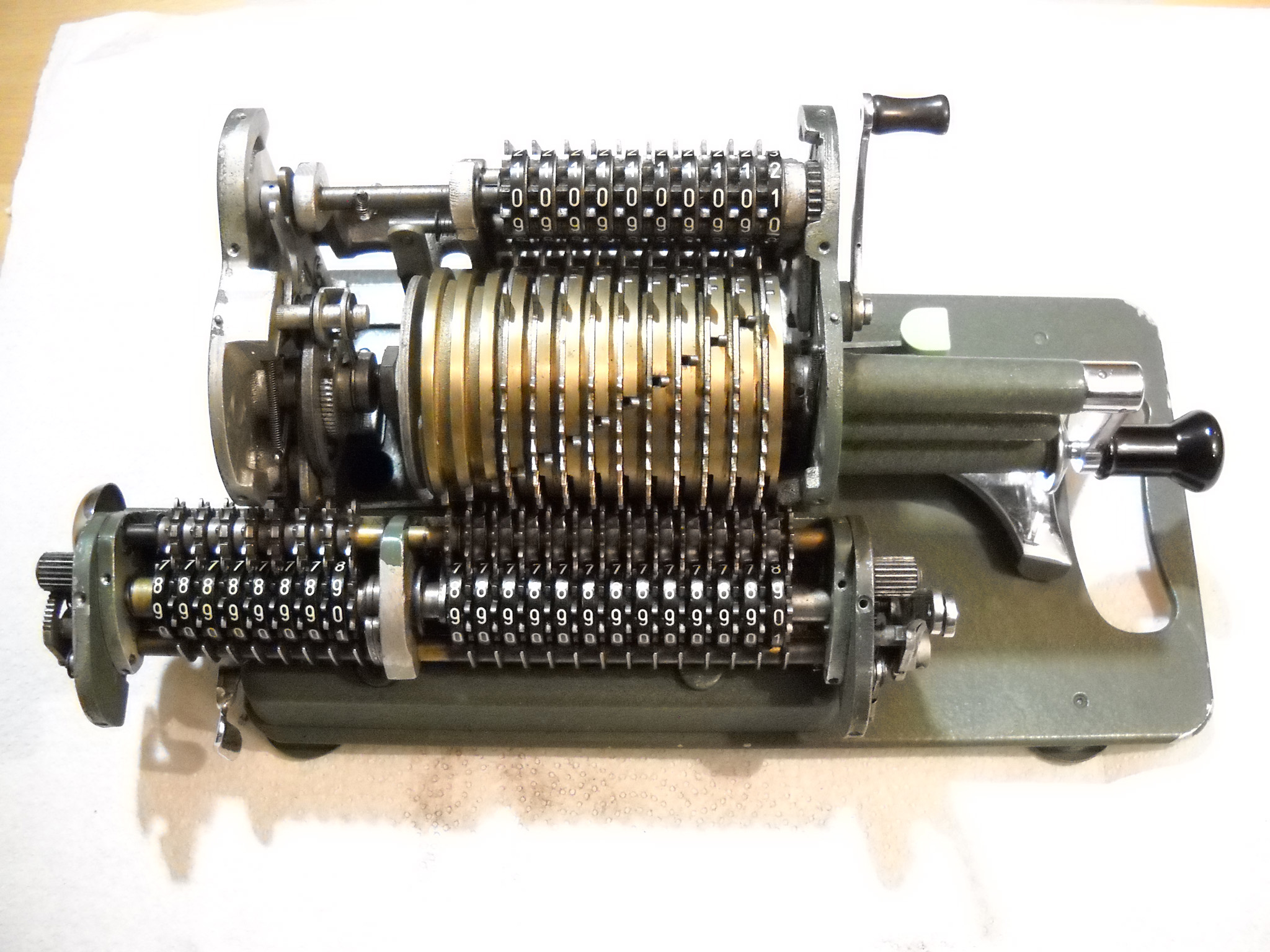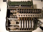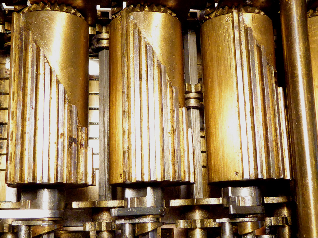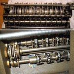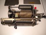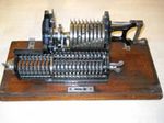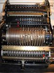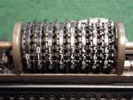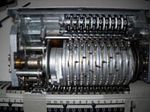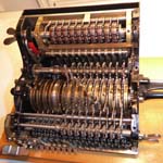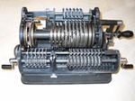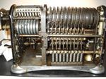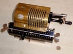 Was gehört zu dieser Gruppe?Schon 1671 erfand Gottfried Wilhelm Leibniz die Staffelwalze: Eine Walze mit neun verschieden langen „Rippen“, die ein Zahnrad je nach dessen Stellung null- bis neunmal dreht. Damit kann man die Ziffern 0 bis 9 in ein Resultatwerk übertragen. Dieses Video über den Nachbau eines Arithmometers erklärt dessen Funktionsprinzip (und dabei auch die Staffelwalzen) ganz wundervoll. |