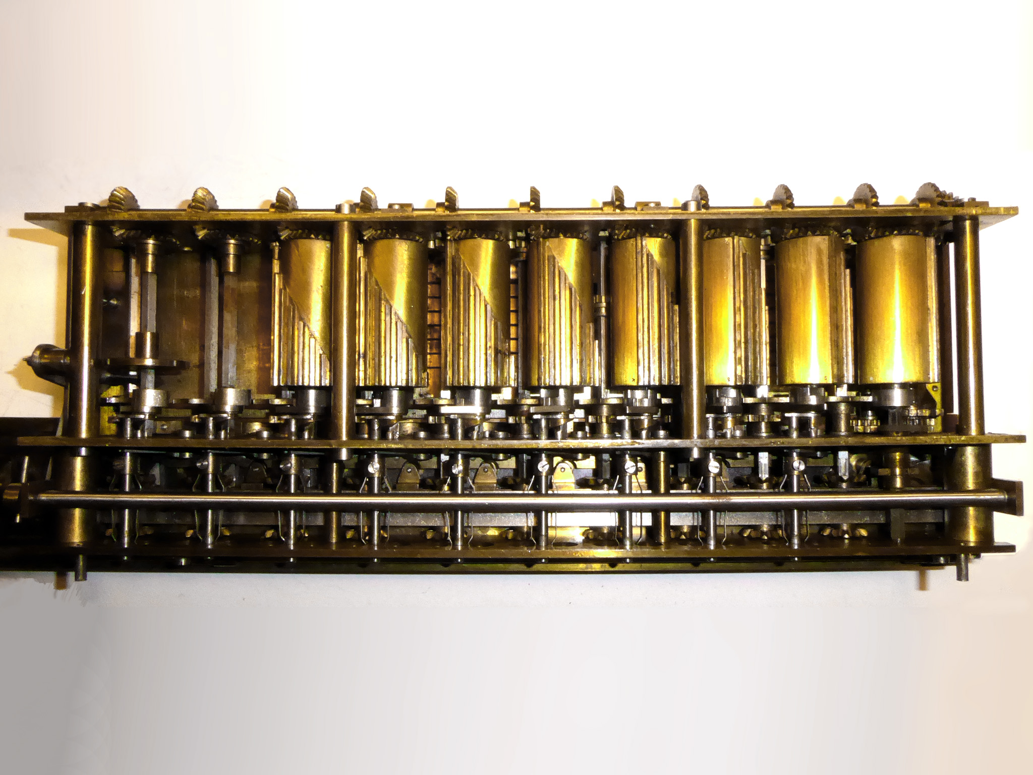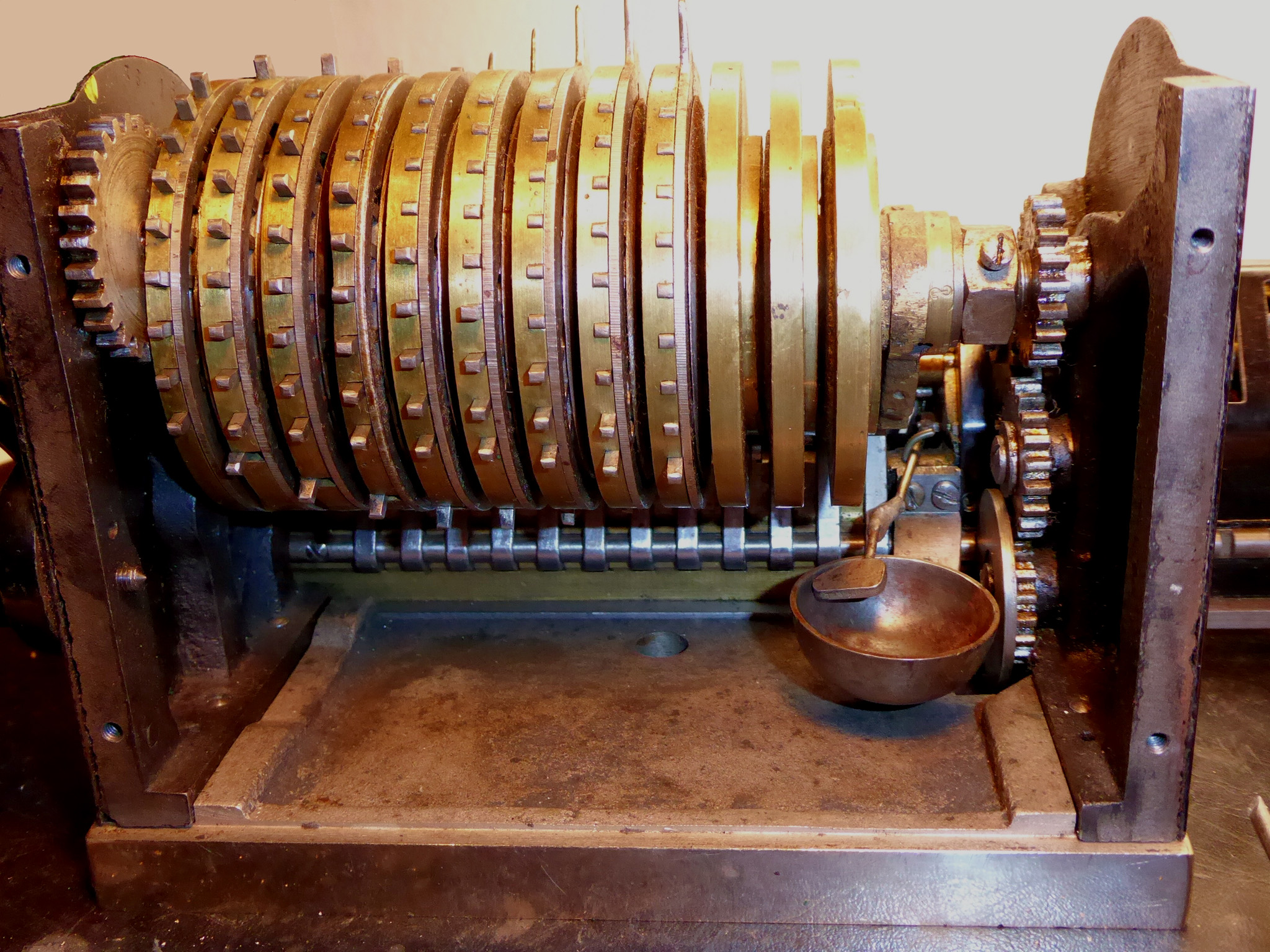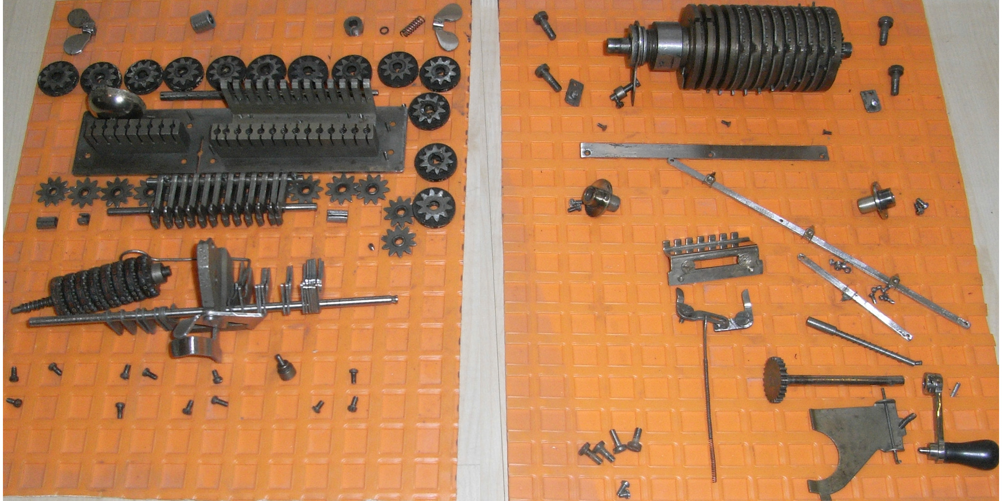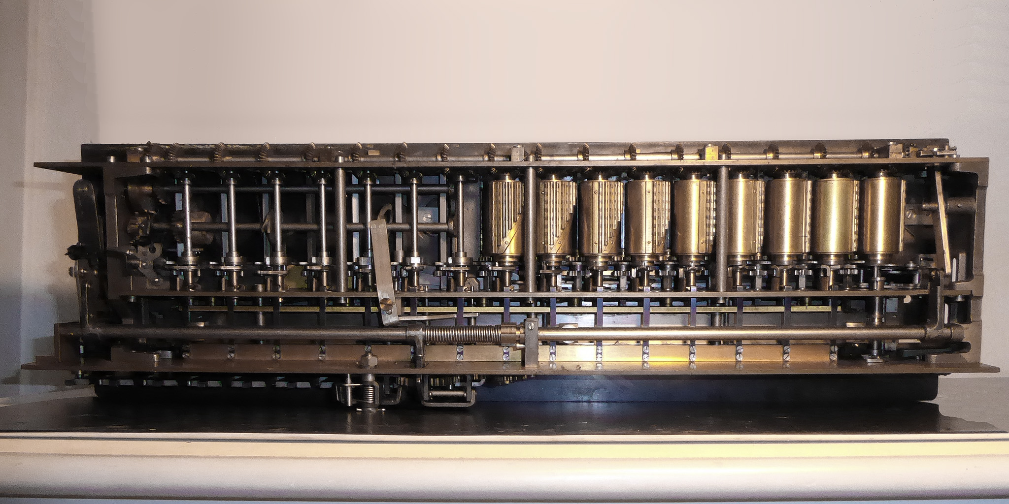 Was gehört zu dieser Gruppe?Schon 1671 erfand Gottfried Wilhelm Leibniz die Staffelwalze: Eine Walze mit neun verschieden langen „Rippen“, die ein Zahnrad je nach dessen Stellung null- bis neunmal dreht. Damit kann man die Ziffern 0 bis 9 in ein Resultatwerk übertragen. Dieses Video über den Nachbau eines Arithmometers erklärt dessen Funktionsprinzip (und dabei auch die Staffelwalzen) ganz wundervoll. |