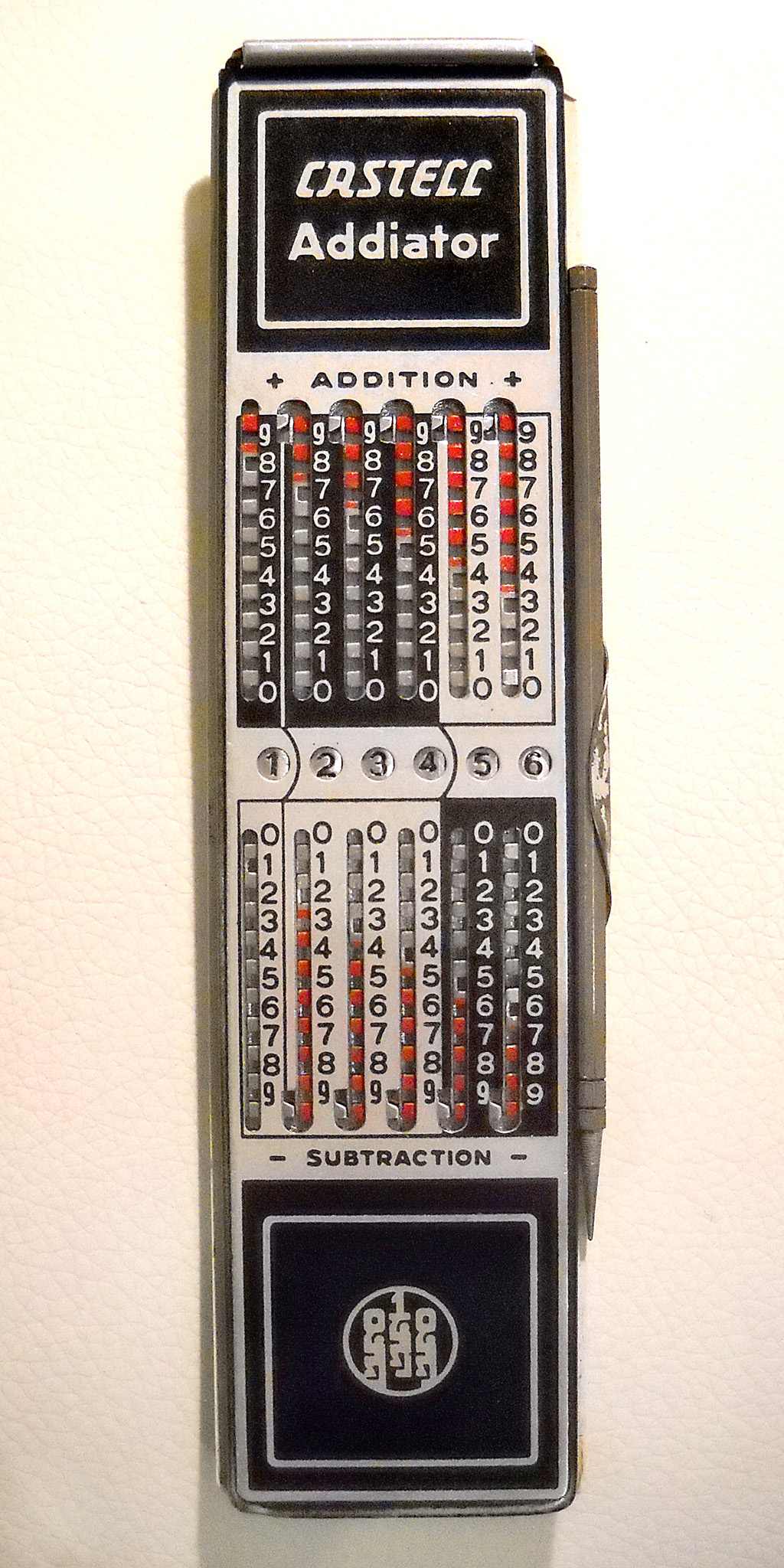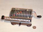 Was gehört zu dieser Gruppe?Nicht immer waren große, teure Rechenmaschinen nötig, oft konnte man sich auch keine leisten. Dann benutzte man entweder einfache Rechenhilfen aus der vorigen Gruppe oder die hier versammelten kleinen Maschinen, deren gemeinsames Merkmal das Resultatwerk mit echtem Zehnerübertrag ist. |