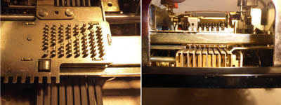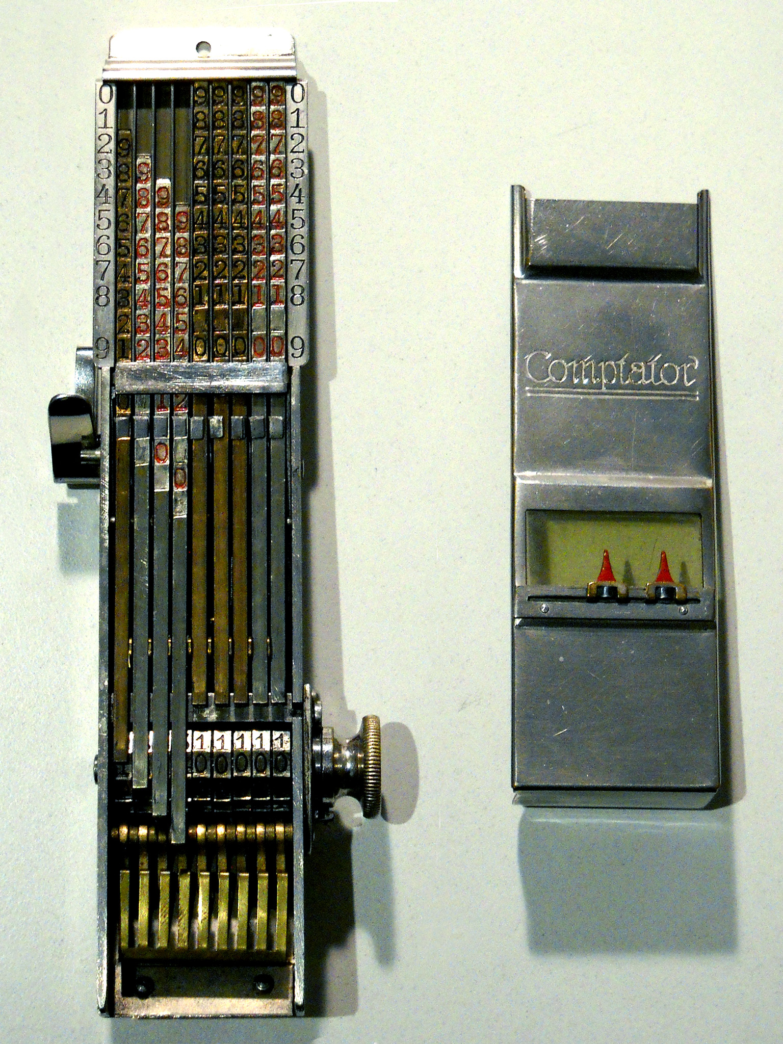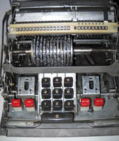 Was gehört zu dieser Gruppe?Mehrere andere Systeme zur Werteübertragung wurden entwickelt, konnten aber den Markt nie so dominieren wie Staffelwalze und Sprossenrad. Einige davon waren für Motorantrieb und/oder Automatisierung sogar besser geeignet. Aber z.B. mit Comptometern kann man doch auch...?Ja, auf Comptometern und vielen anderen Geräten kann man mit speziellen Verfahren (z.B. durch Verwendung von Reziprokwerten oder Zehner-Komplementen) auch subtrahieren, multiplizieren und dividieren. Doch dafür ist dann wieder einige Kopfarbeit nötig. |