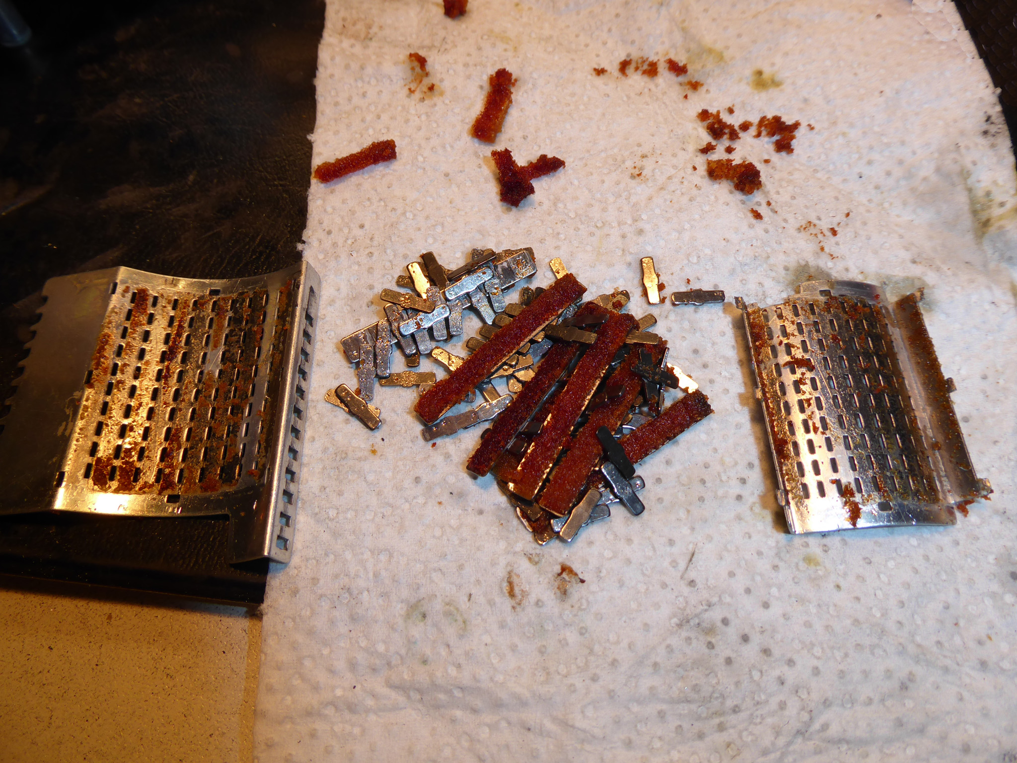 3/1: Viele Gebrauchsspuren, Drähte mit dicker Rostschicht, Kugeln in gutem Zustand; perfekt benutzbar.