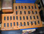 Vordrucke am Computer entworfen, gedruckt, ausgeschnitten und auf Buchenleisten 10x10mm² aufgeklebt. Mit Schachtel und Anleitung. |