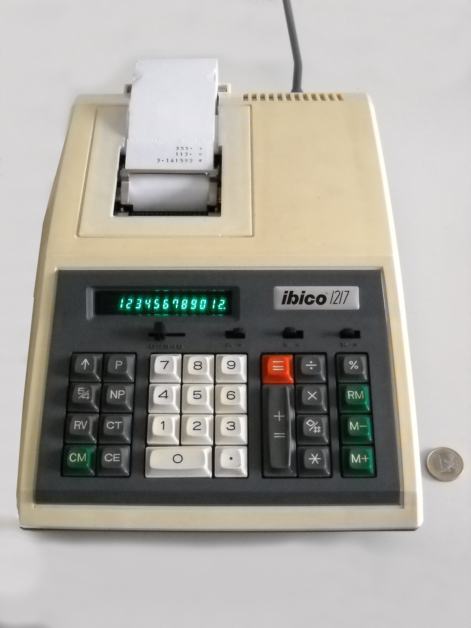 In den Funktionen ähnlich wie der Ibico 1217, doch zwei Jahrzehnte jünger: Die Flüssigkristall-Anzeige ist wesentlich stromsparender, das Gerät ist deutlich kleiner, mit Batterien betreibbar und daher portabel. Als neue Funktionen gibt es Währungsumrechnung und „MarkUp“. Der kleine Drucker ist allerdings deutlich schlechter und langsamer. |