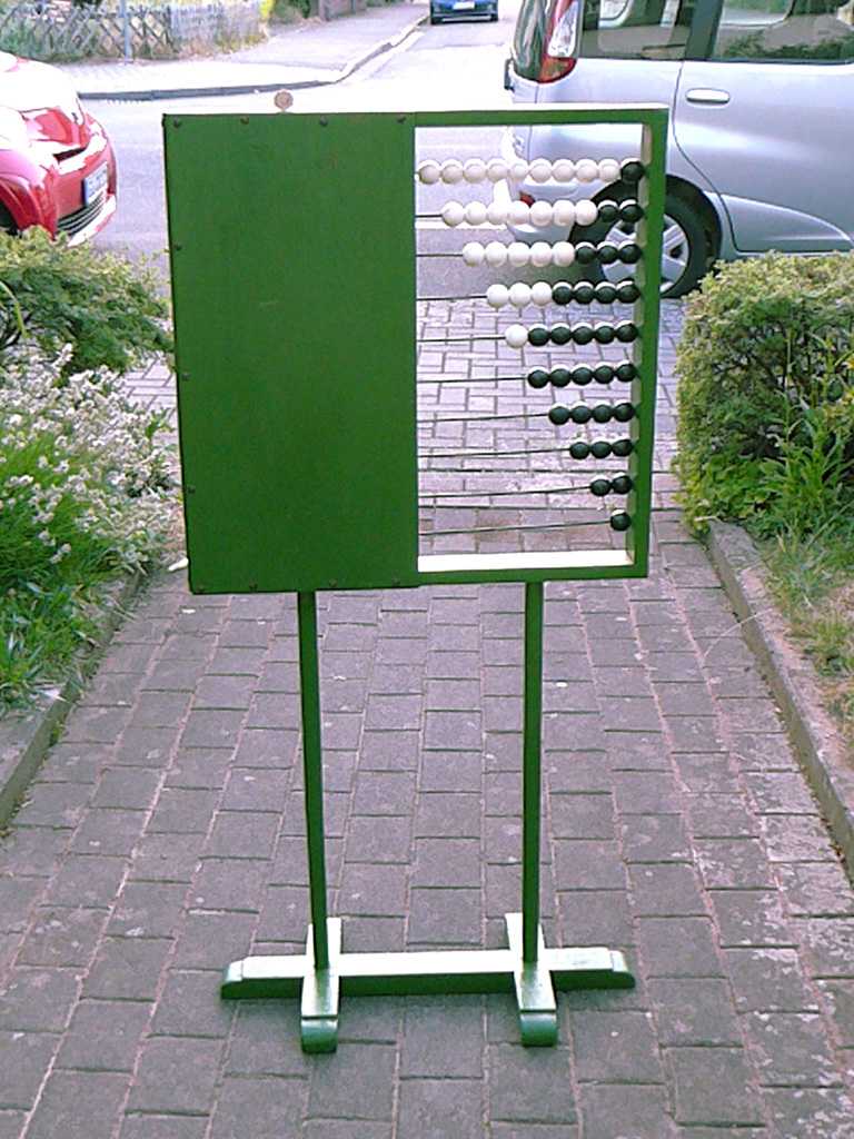 Dieser große Kugelrechner aus einer ehemaligen Dorfschule ist eher grob zusammengezimmert, vielleicht ein Eigenbau des Schul-Hausmeisters in der Notzeit nach dem Krieg. Unklar ist allerdings, nach welchem Krieg ... |