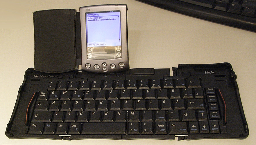 Dieser „PDA“-Winzling ist wirklich praktisch: klein und leicht, mit intuitiver Bedienung und der fast schon genialen Handschrifterkennung „Graffiti“. Dieser hier ist mein dritter Palm - mit besserem Display als die Vorgänger (auf Kosten der Akku-Laufzeit) und der Möglichkeit, den Speicher per SD-Karte um bis zu 1GB zu erweitern. |