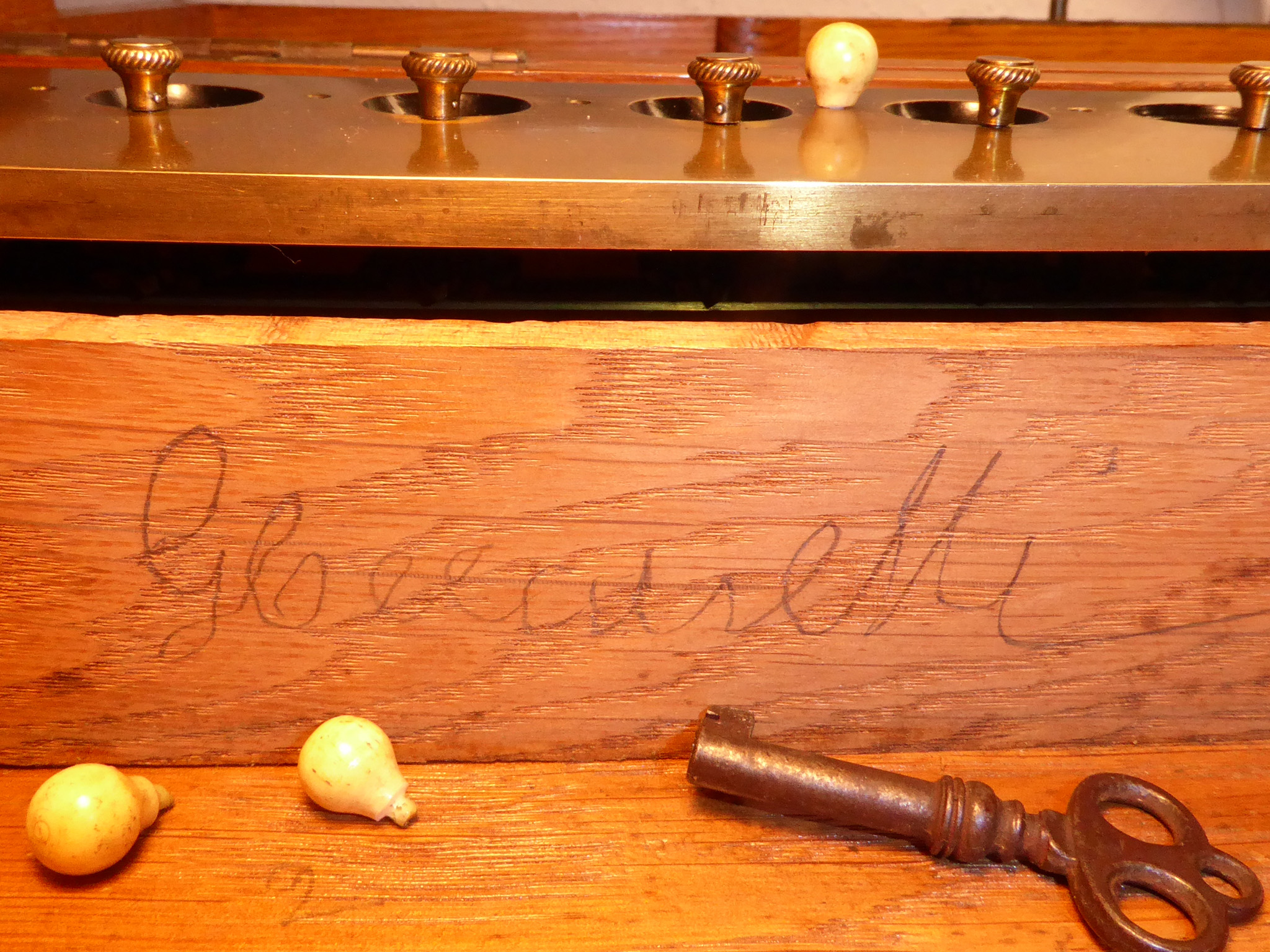Füße neu verleimt, Holzwürmer mit Salmiakgeist bekämpft. |