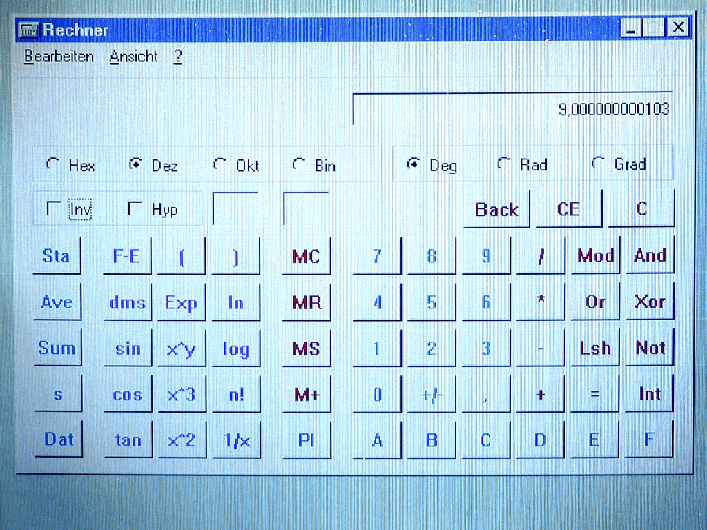 Der Rechner von Windows 98 sieht exakt wie |