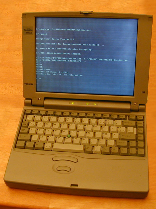 Noch ein Toshiba-Notebook, nun mit den ersten Pentium-Prozessor. Immer noch der schlechte DSTN-Bildschirm, aber deutlich mehr Speicher und verdoppelter Takt. Das Diskettenlaufwerk kann noch nicht gegen ein CD-Laufwerk getauscht werden, das ging erst bei den Nachfolgemodellen der „Pro“-Reihe. Auch einen USB-Anschluss oder IR-Port sucht man noch vergebens. |