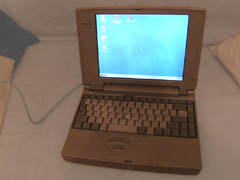 2/2: Tasten etwas vergilbt und einige leicht abgehend; Akku praktisch tot, läuft gut (seit kompletter Neuinstallation ist auch die „XP-Verstopfung“ weg, die es zuvor sehr langsam machte). mit externem CD-Brenner. |