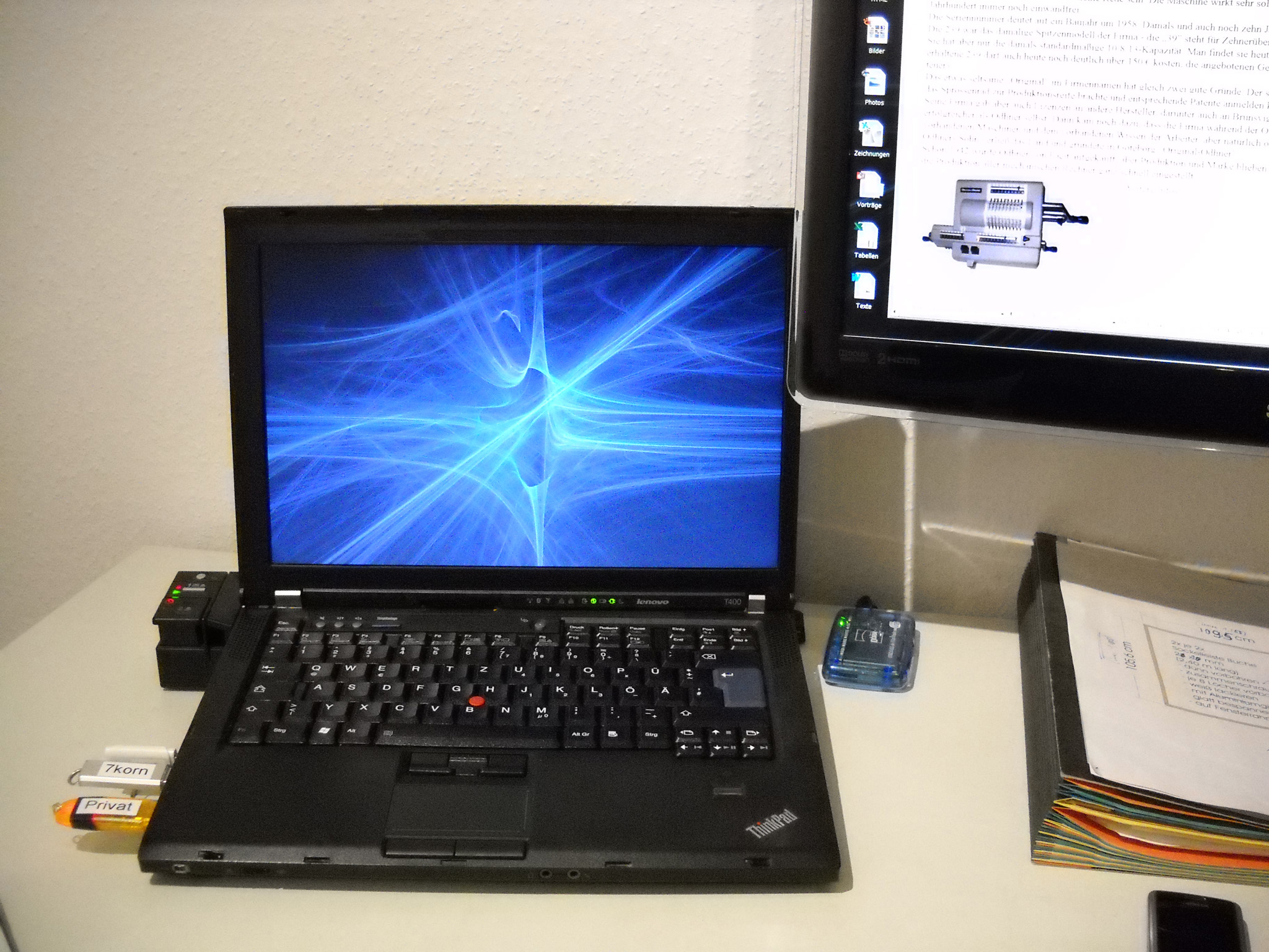 Die Nachfolger der legendären T4x-Thinkpads waren dann nicht mehr von IBM, sondern von Lenovo. Besondere Neuerung sind vor allem die SSD-„Festplatte“ und der Mehrkern-Prozessor. Ansonsten gab es wieder mal mehr Speicher und ein paar kleine Aufwertungen. USB 3 gab es noch nicht, war aber über Einschubkarte nachrüstbar. |